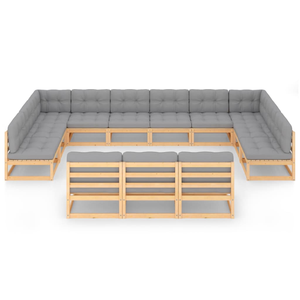 Salon de jardin 13 pcs avec coussins Bois de pin massif 15
