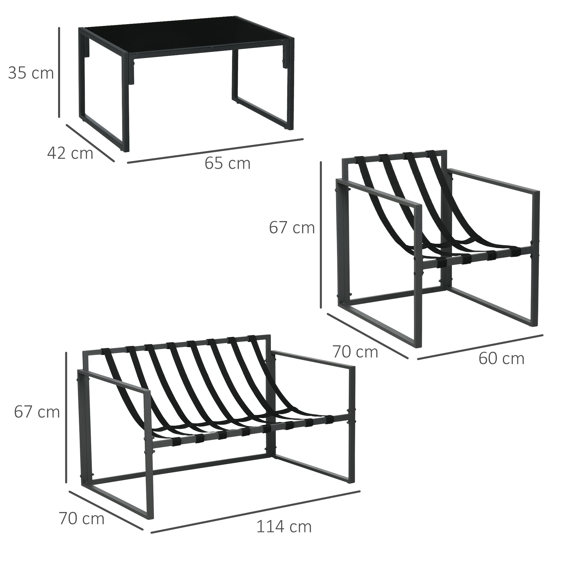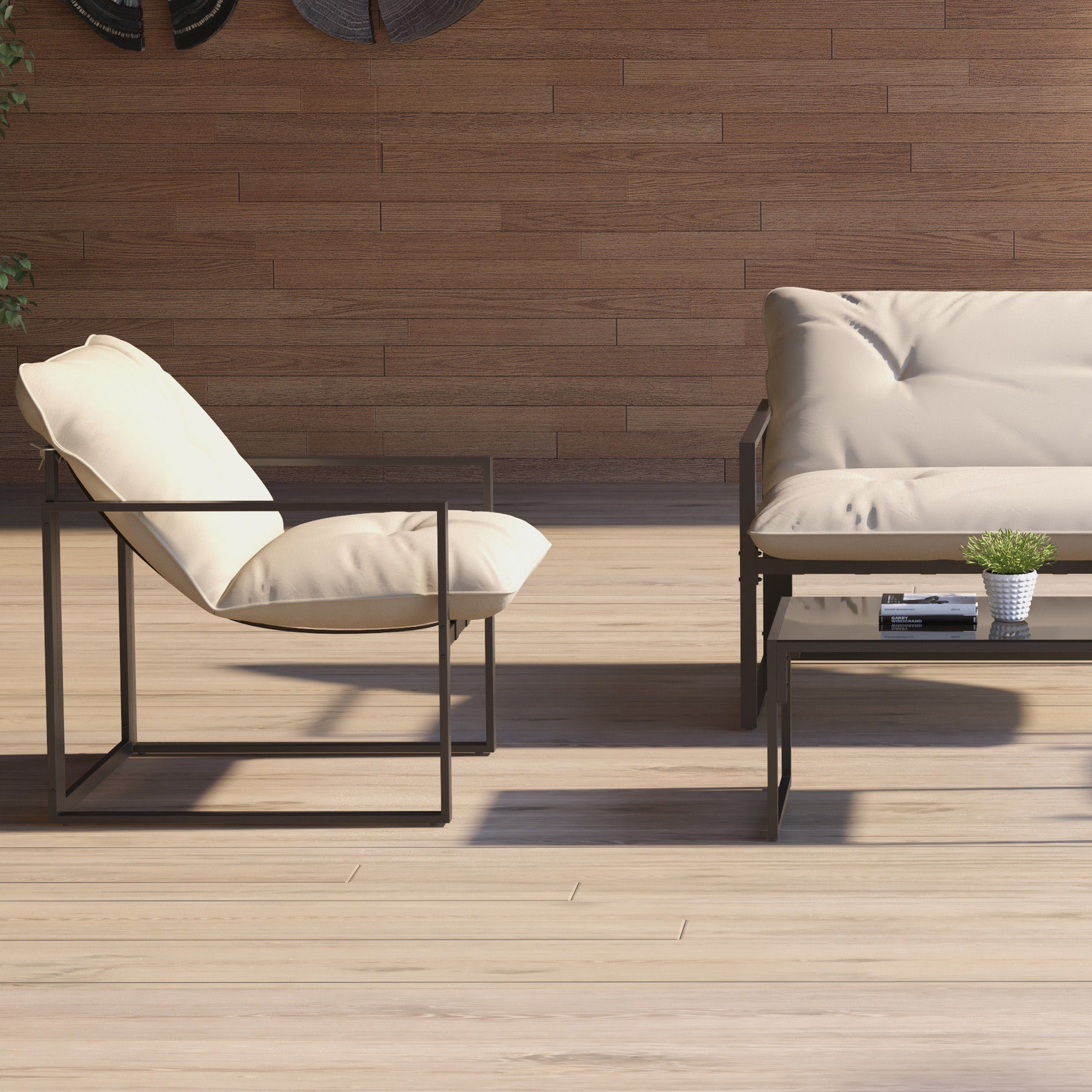Salon de jardin 4 personnes - 4 pièces, 3 coussins - acier époxy noir polyester beige
