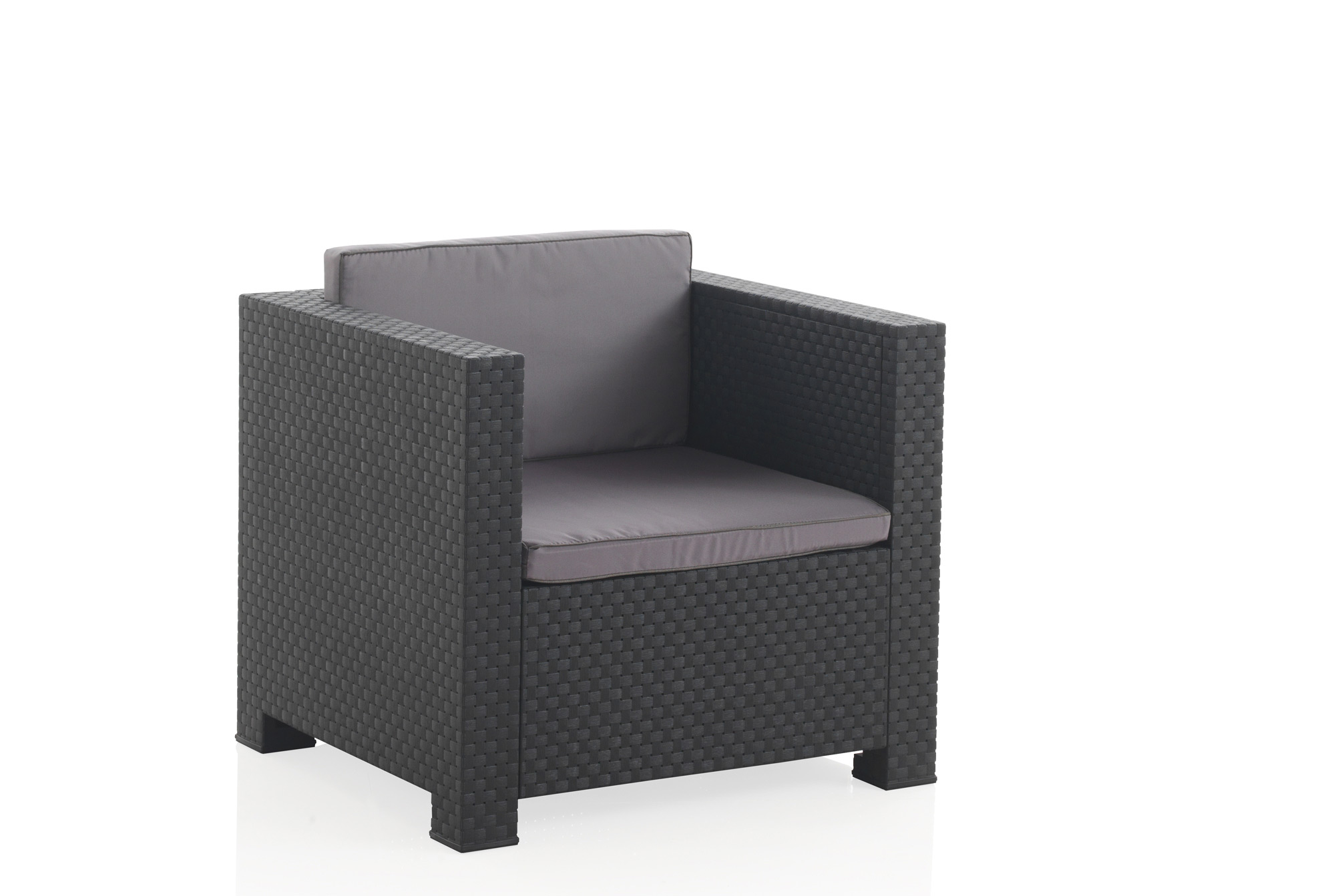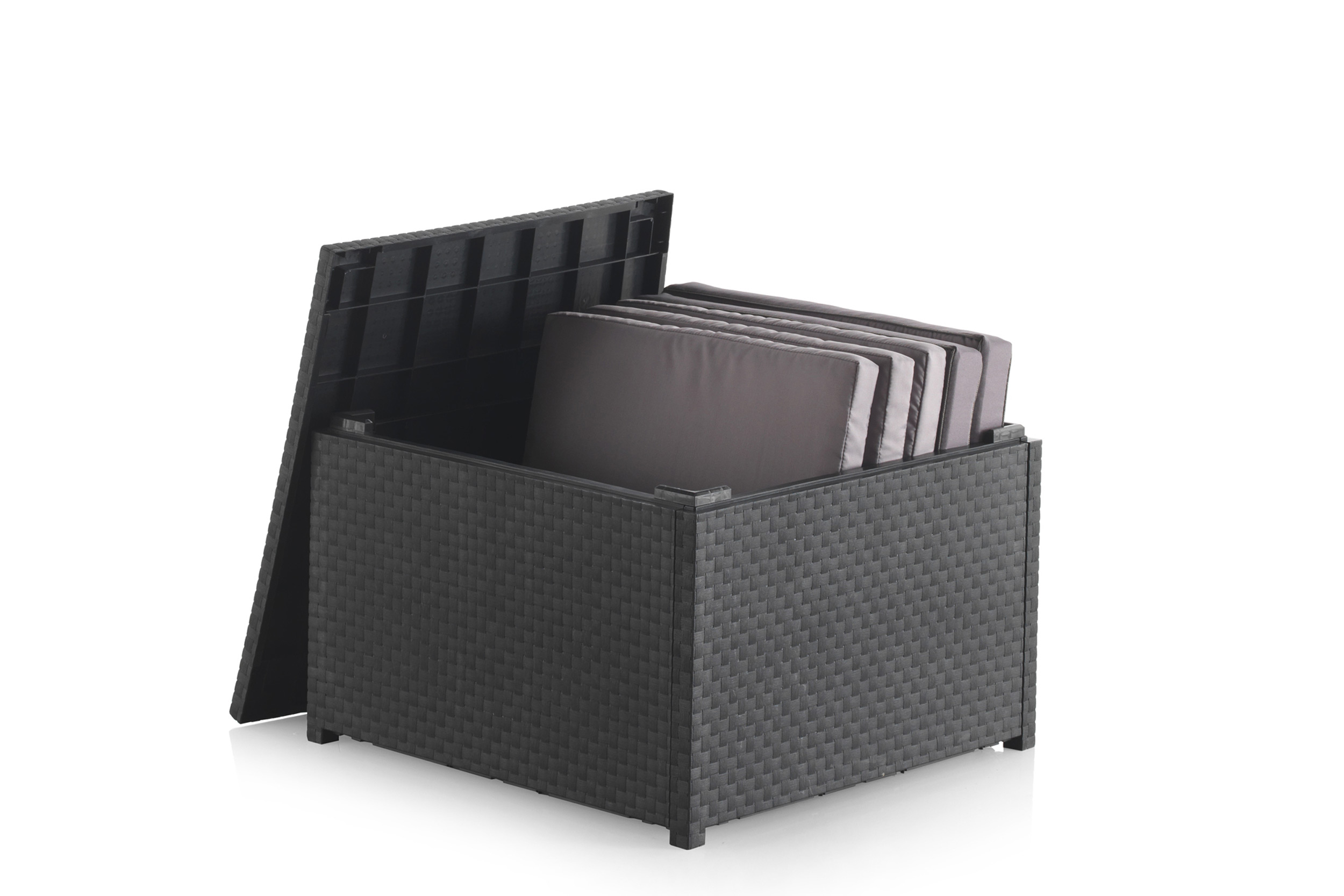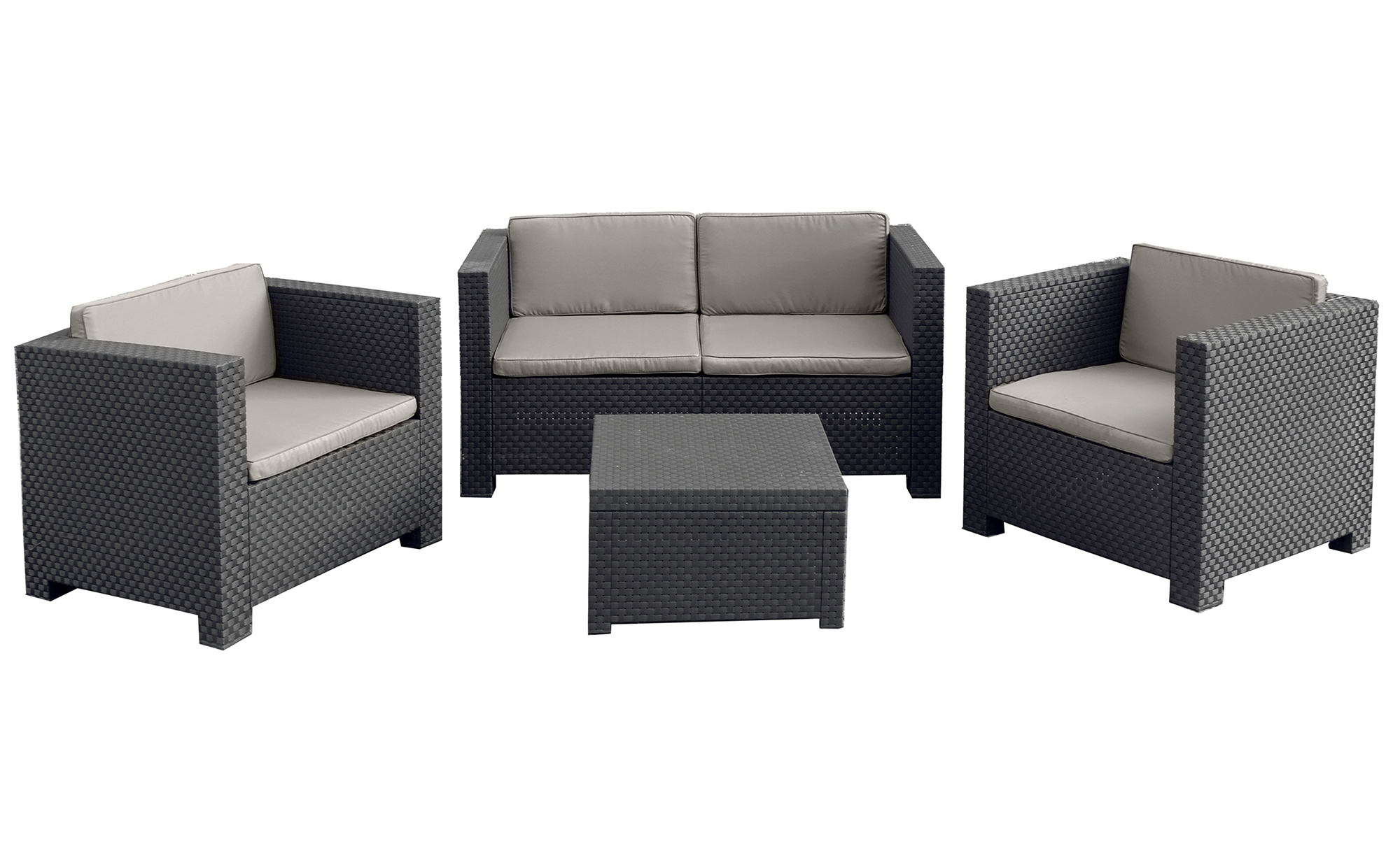 Salon de jardin 4 places effet résine injectée gris + coffre ANKARA