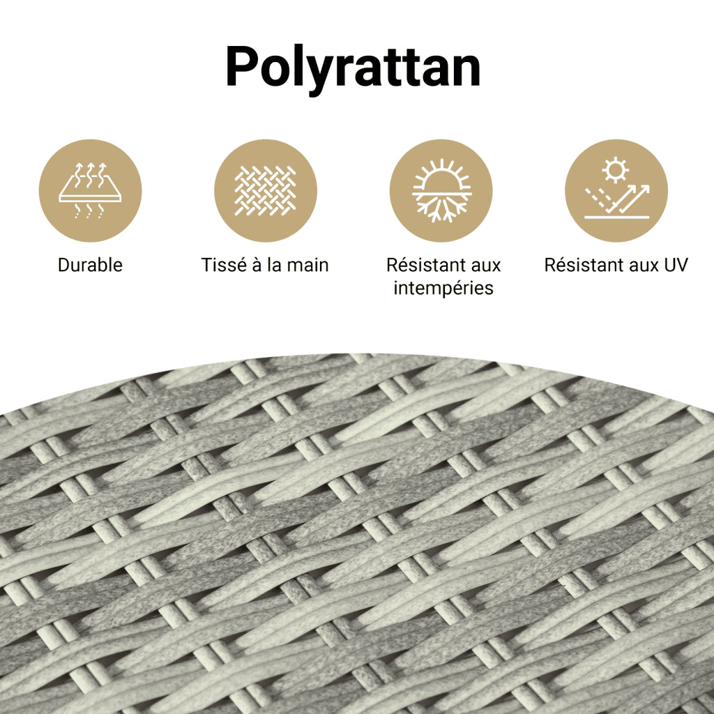 | Libellé | Salon de jardin 6 pcs avec coussins gris clair résine tressée |
