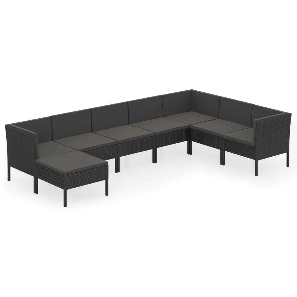 Salon de jardin 8 pcs avec coussins Résine tressée Noir 82