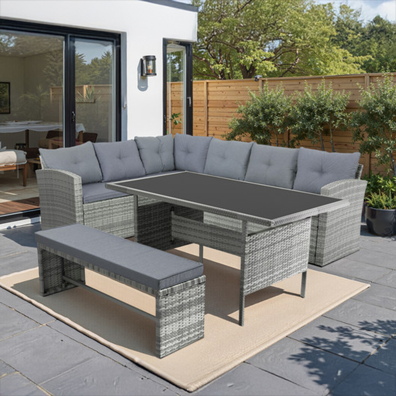| Libellé | Salon de jardin 8 places avec canapé d'angle en résine tressée grise MOOREA |
