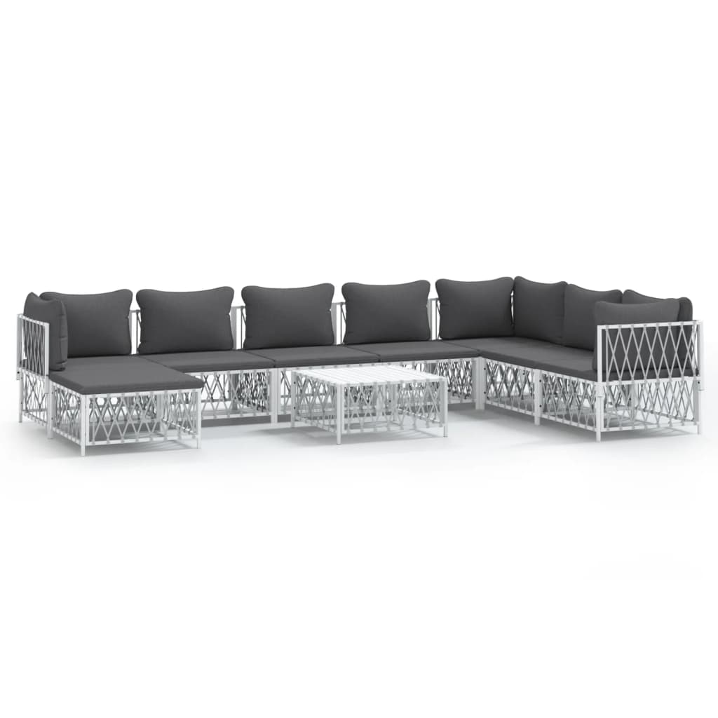 | Libellé | Salon de jardin avec coussins 9 pièces blanc acier |