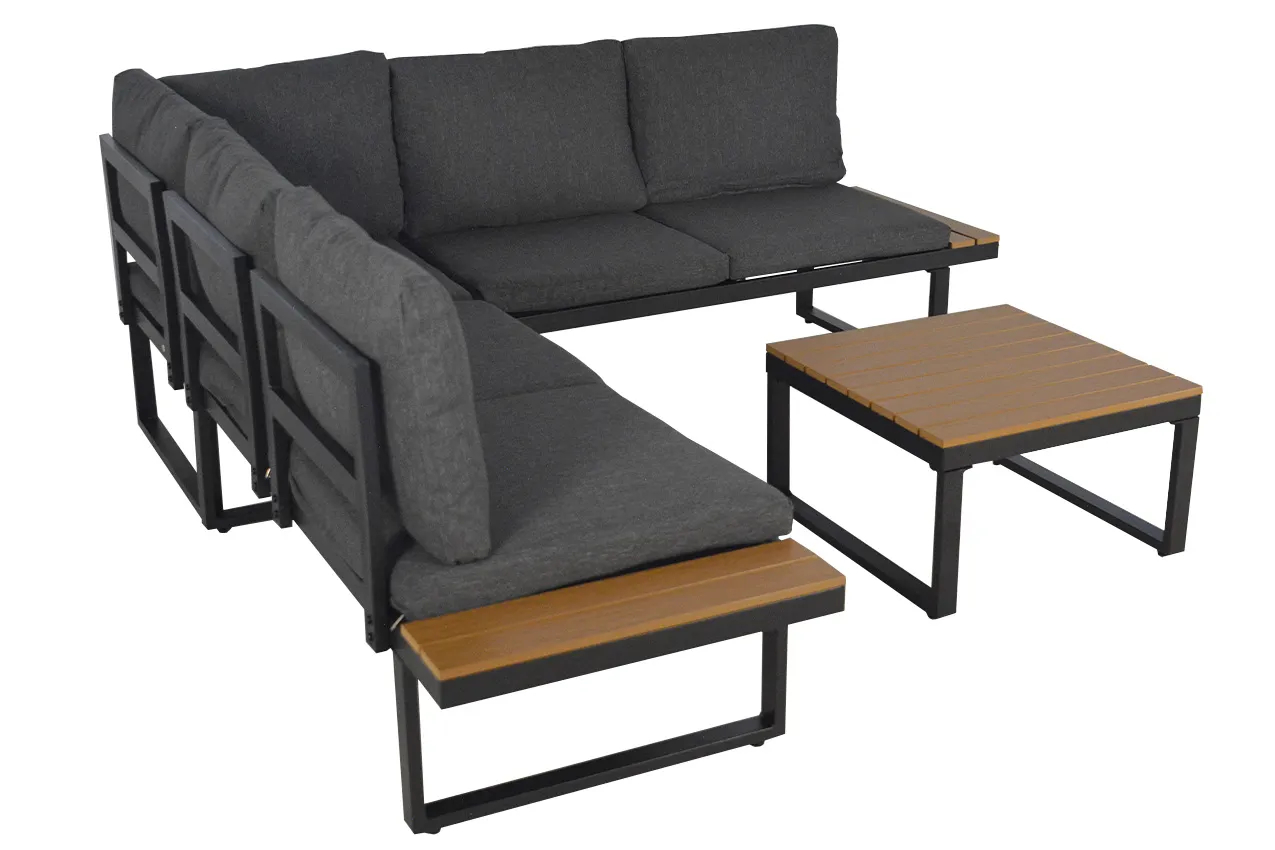 Salon de Jardin Bas d'angle MERIDA Anthracite 5 places - Méridienne