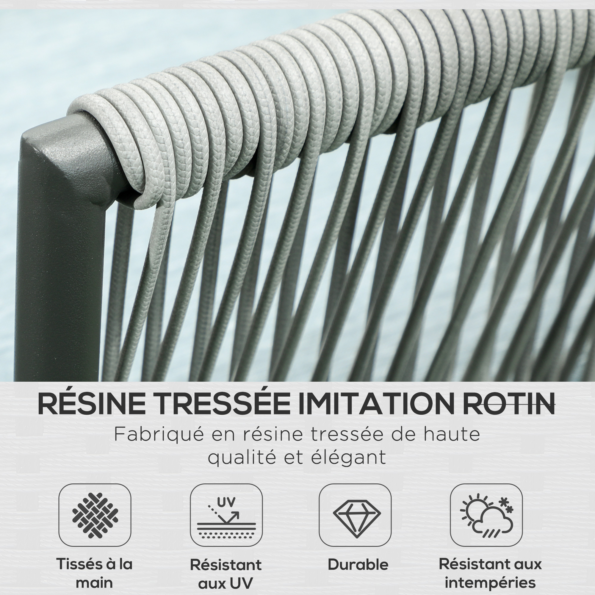 Salon de jardin d'angle 5 places 4 pièces coussins inclus alu. résine tressée gris