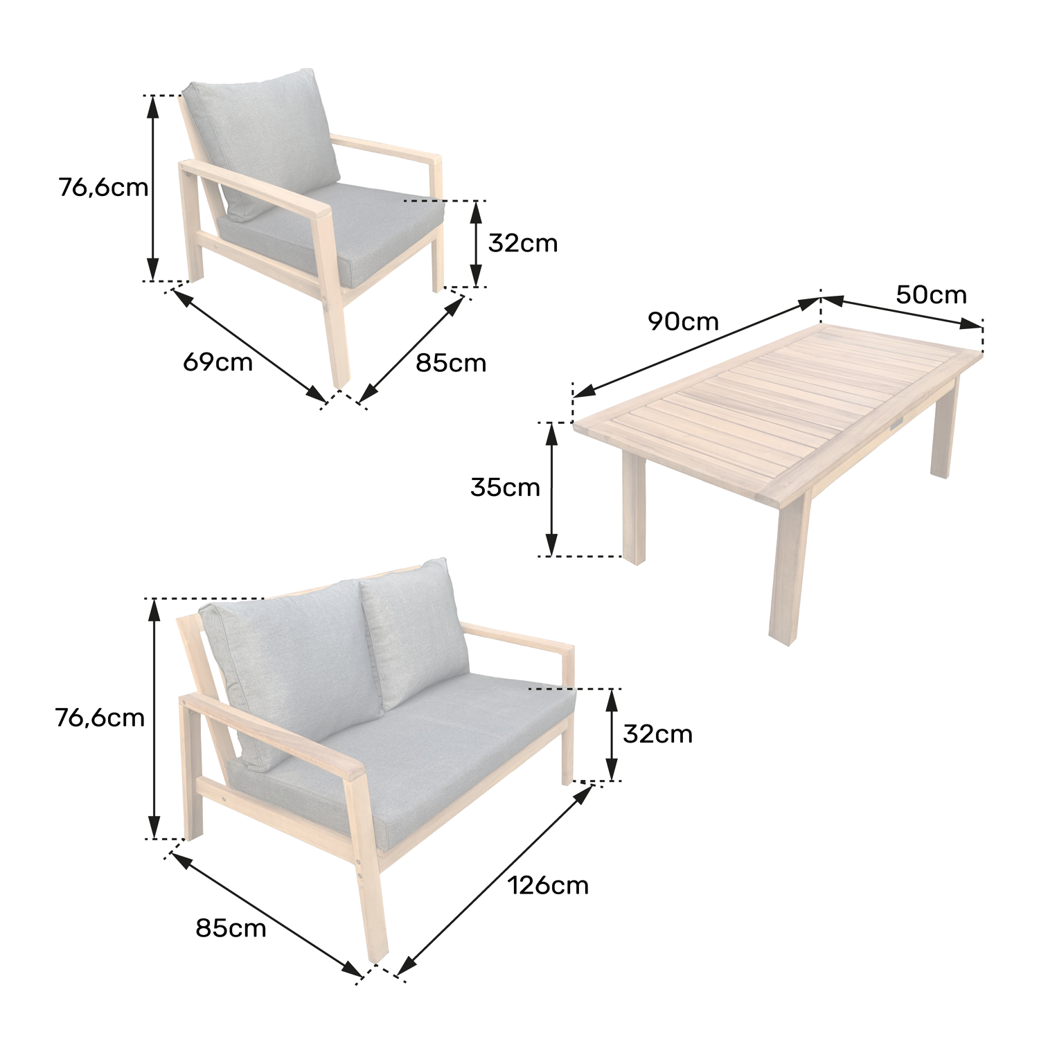 | Libellé | Salon de jardin en acacia 4 places GILI - coussins gris |