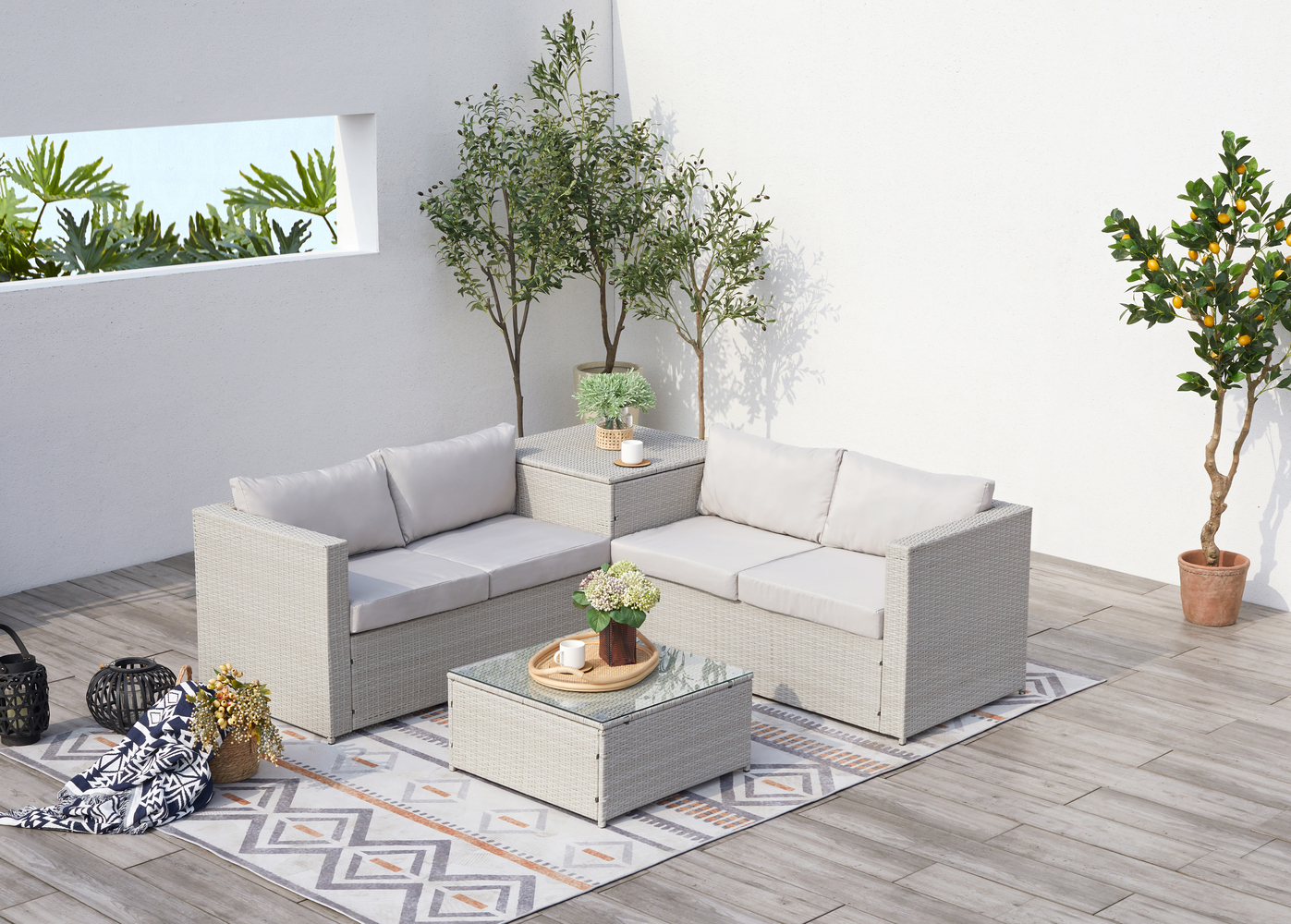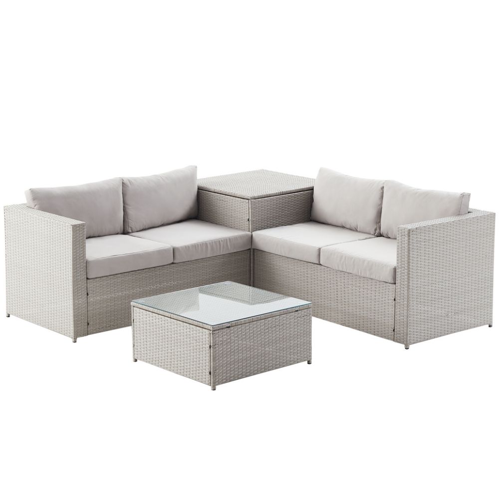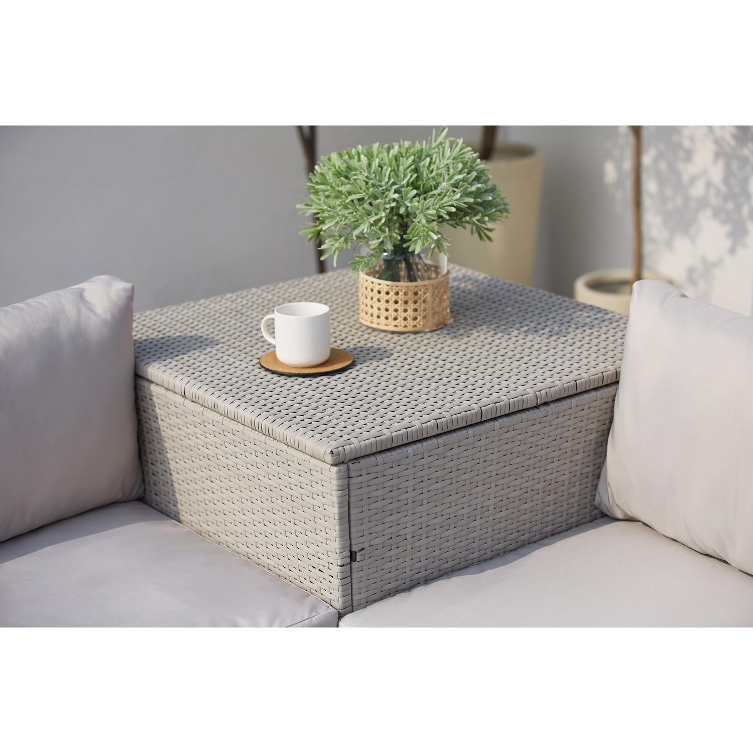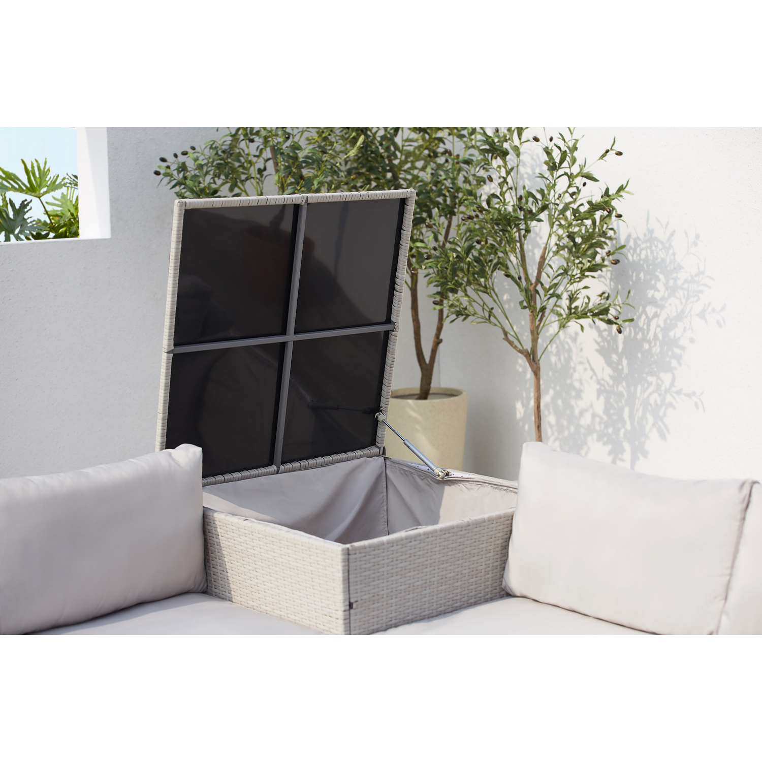 Salon de jardin en résine tressée 4 places avec coffre gris clair SILANG