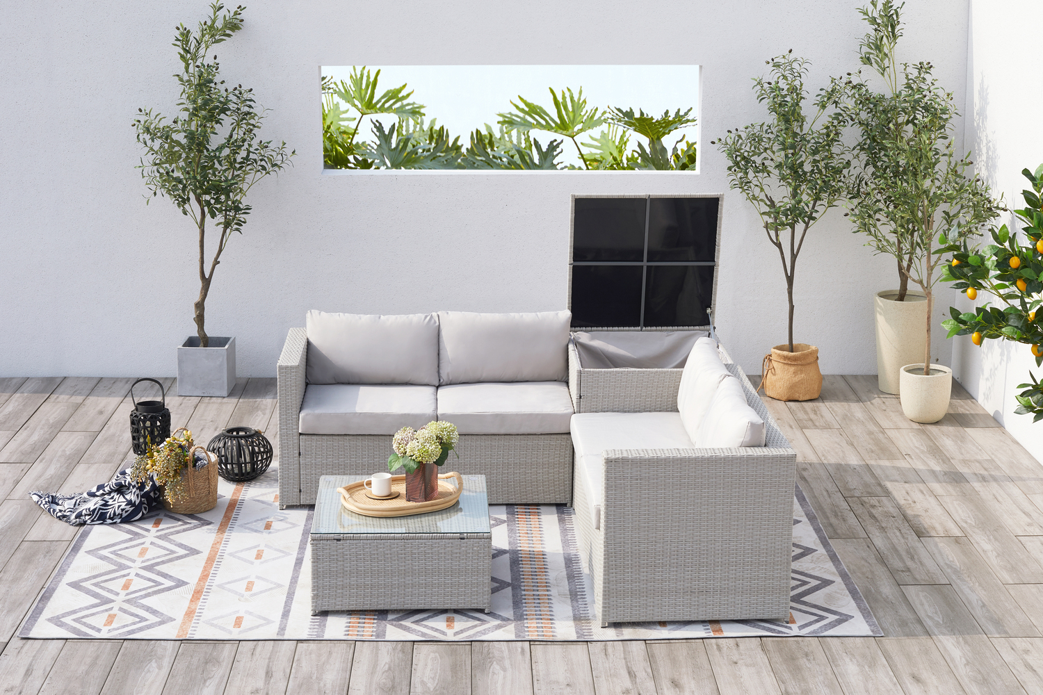 | Libellé | Salon de jardin en résine tressée 4 places avec coffre gris clair SILANG |