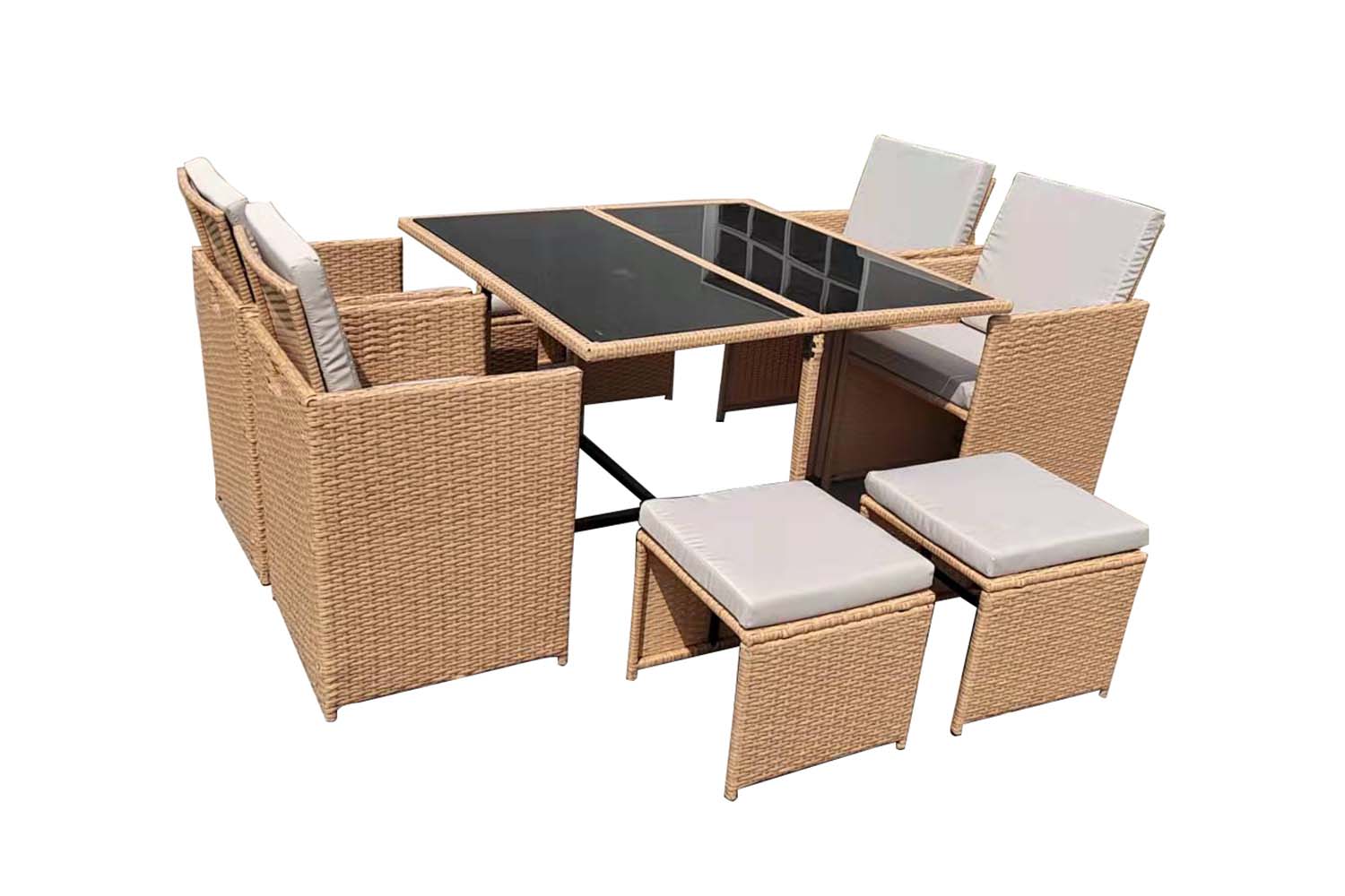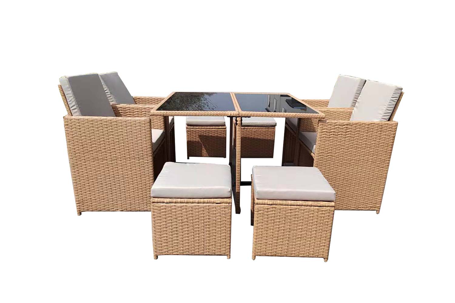 Salon de jardin encastrable résine tressée naturel 8 places FLORIDA