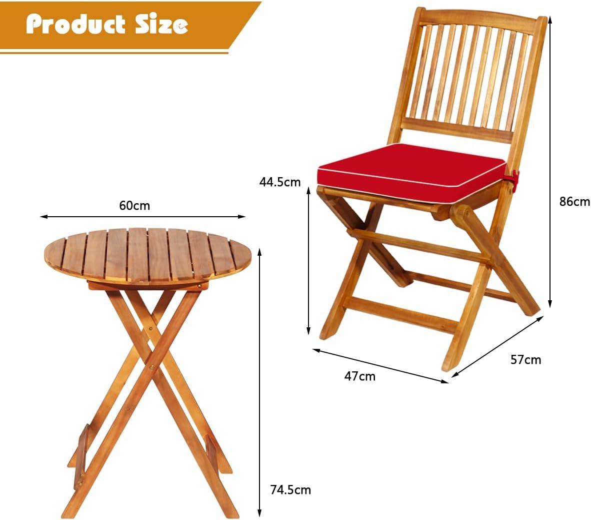 | Libellé | Salon de jardin exterieur 2 personnes, table bistrot en bois acacia 2 chaises 2 coussins amovibles, rouge |