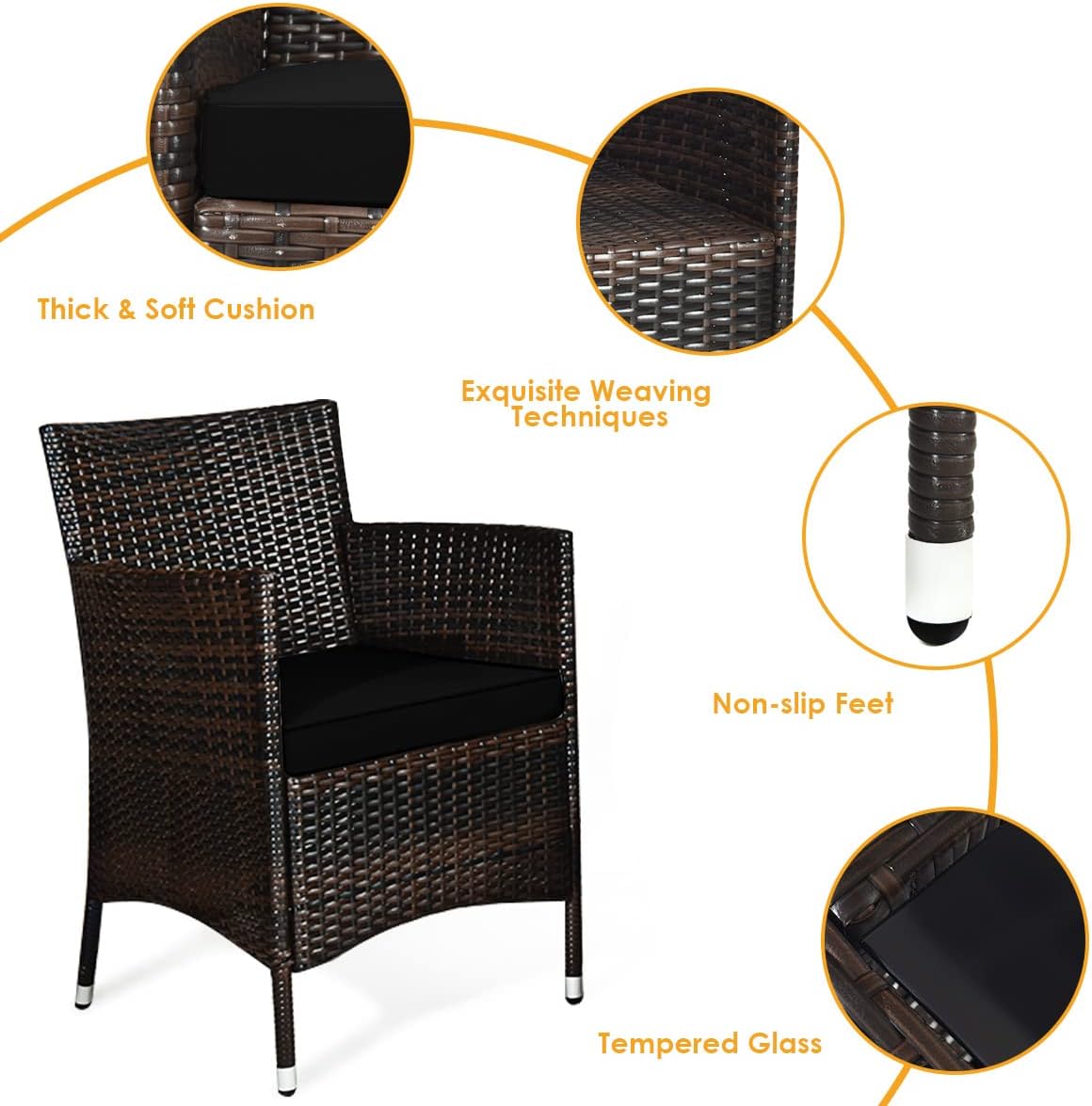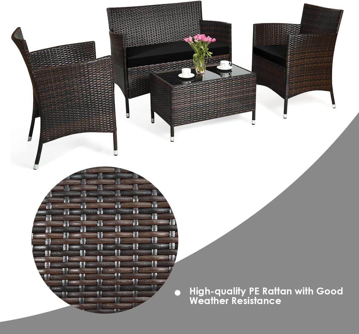 Salon de jardin extérieur 4 personnes, ensemble de meubles en rotin pe, mobilier de jardin marron+noir