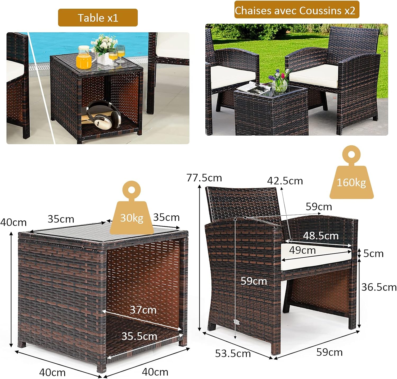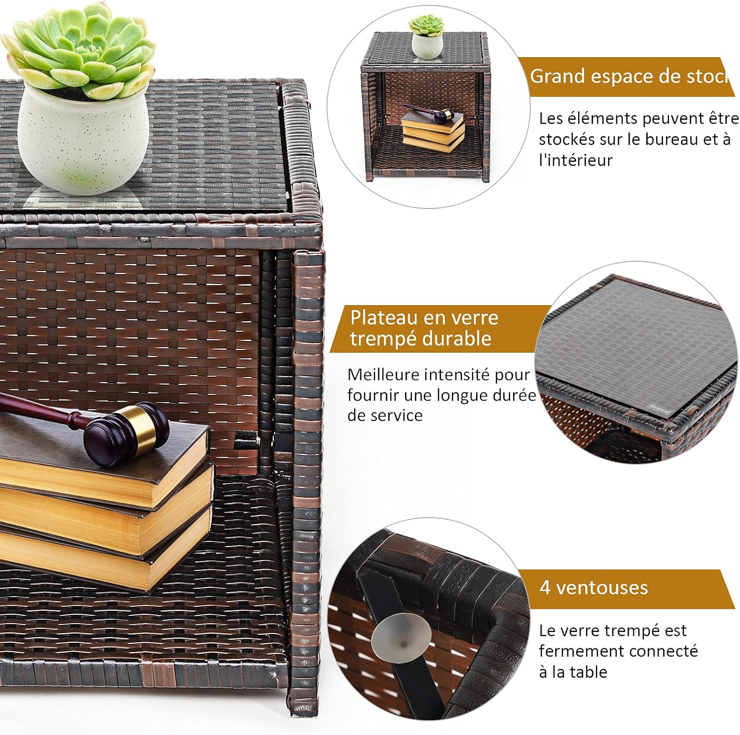 - Design unique : Aspect rotin et surface en verre trempé confèrent à notre salon de jardin une apparence esthétique et moderne, ce qui est idéal pour le salon, jarin, terrasse, blacon, piscine, cour, café etc.