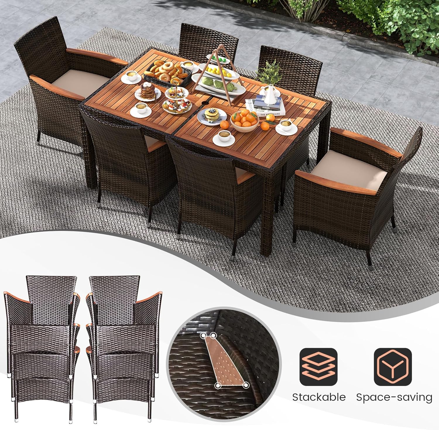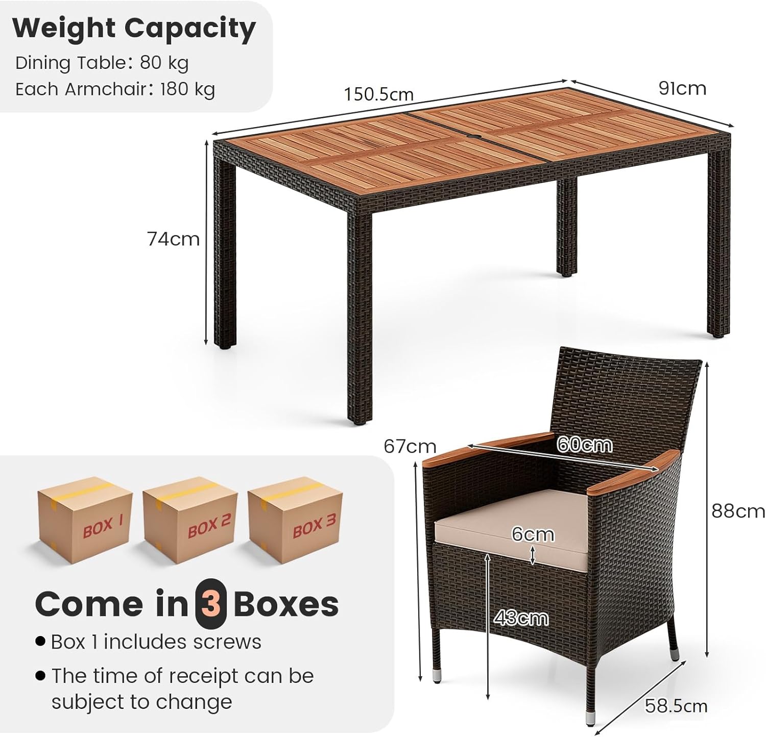 - Matériau de qualité supérieure : le cadre en métal résistant à la rouille combiné à du rotin synthétique de qualité supérieure rend cet ensemble de salon de jardin stable et résistant aux intempéries et aux rayons UV pendant des années. Le plateau de table en bois d'acacia n'est pas facile à déformer ou à casser et peut supporter jusqu'à 80 kg.