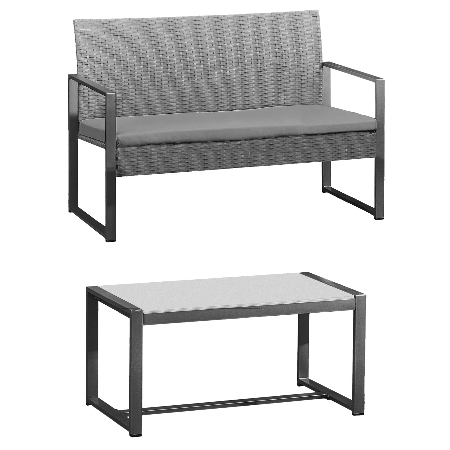 | Libellé | Salon de jardin MAJORQUE en résine tressée gris 4 places - coussins gris |