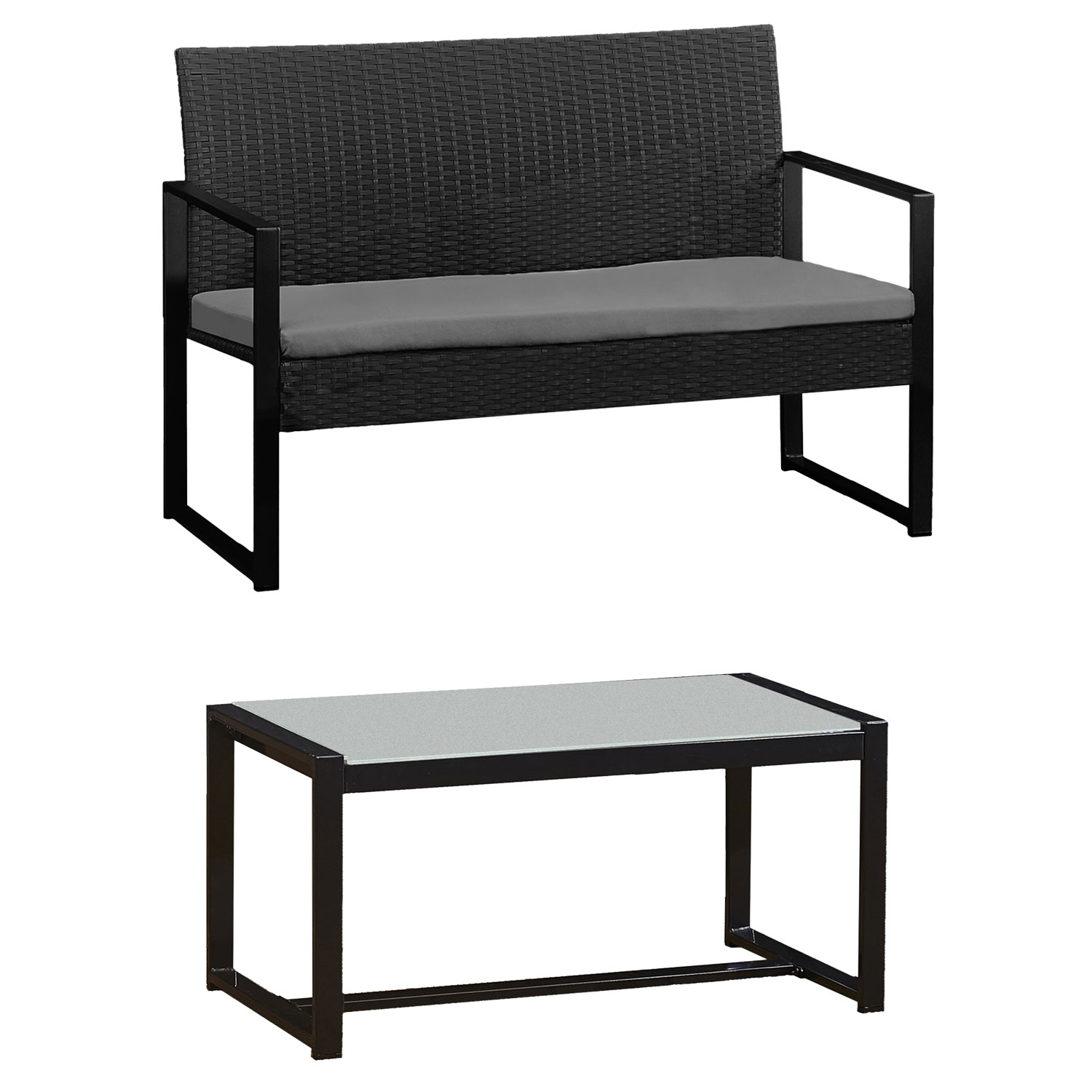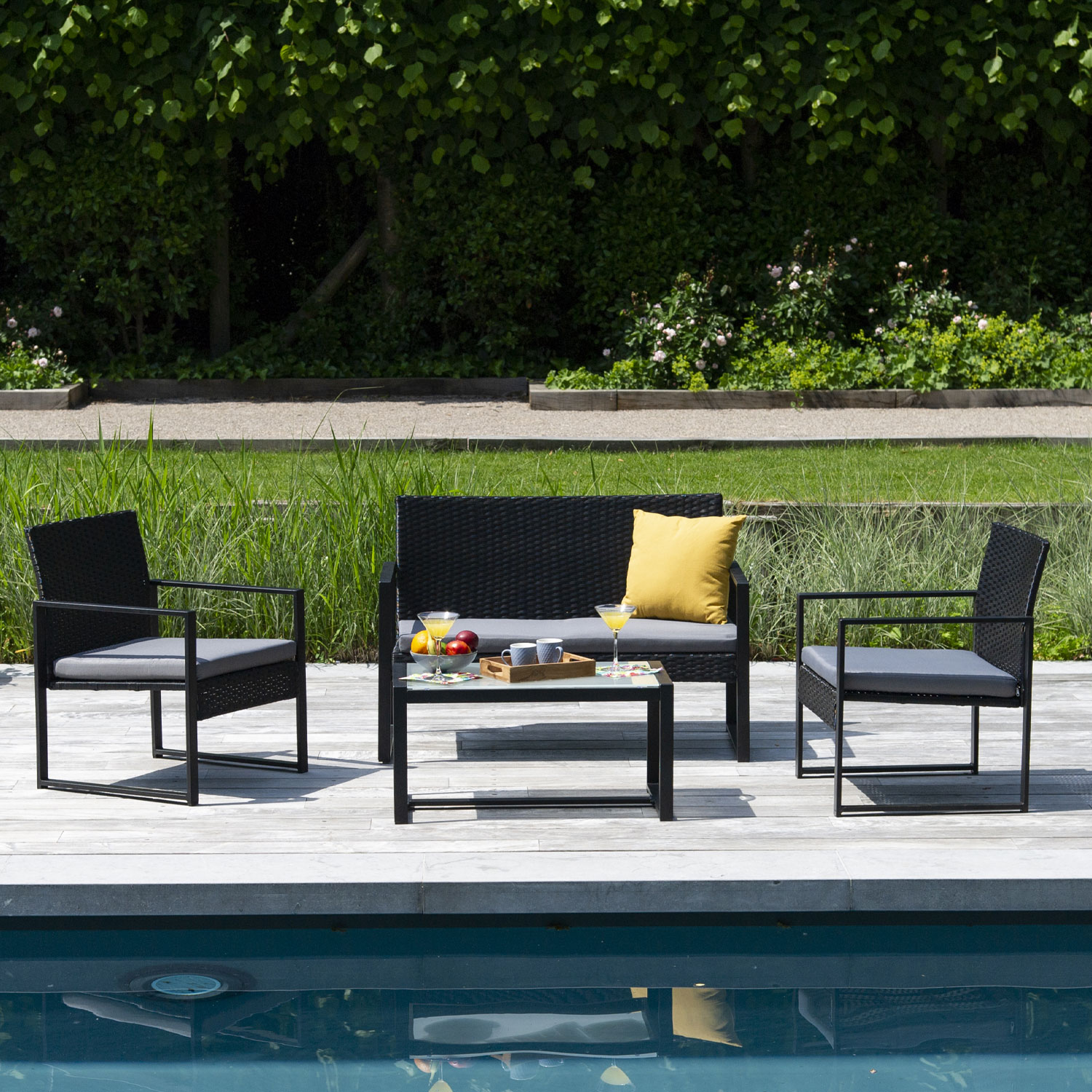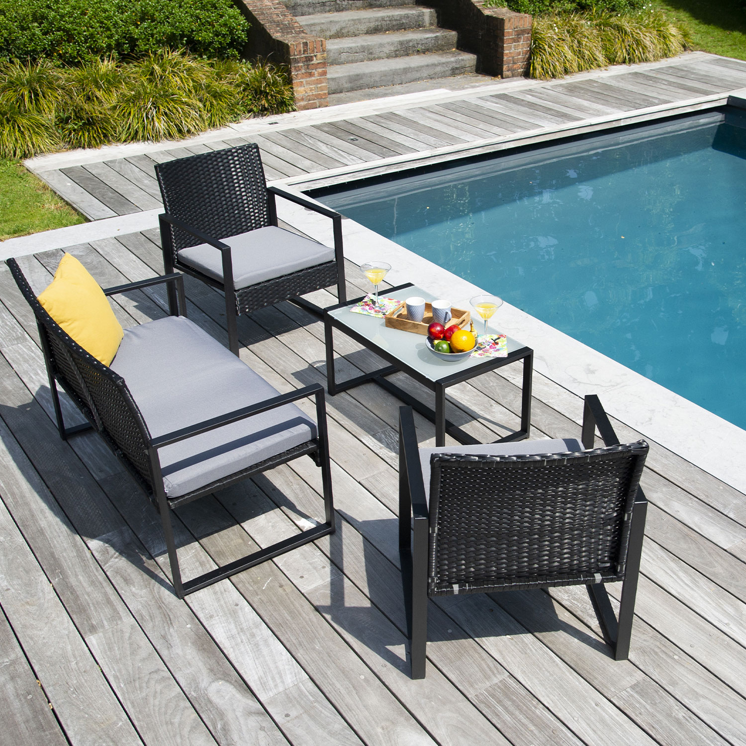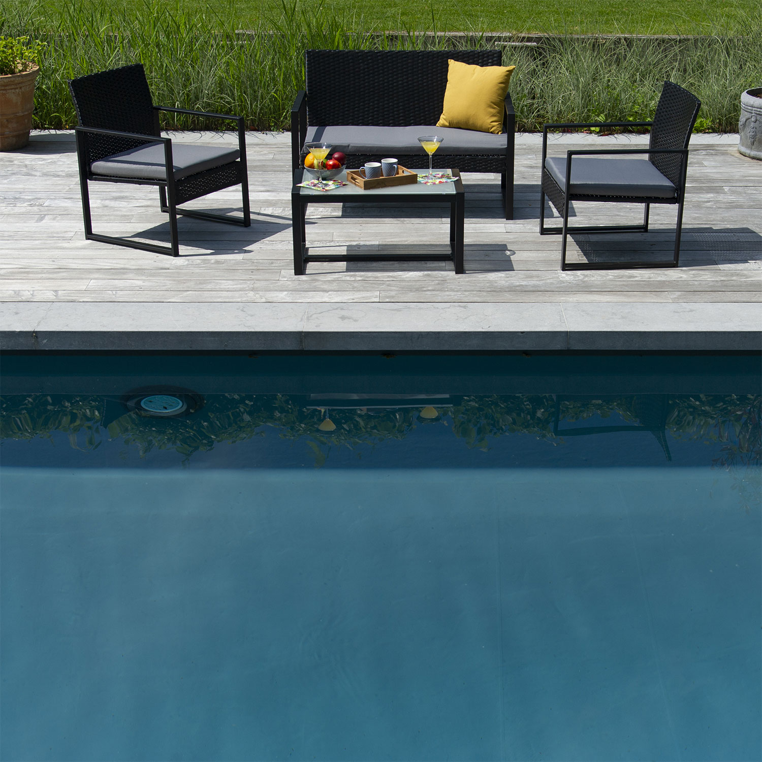 | Libellé | Salon de jardin MAJORQUE en résine tressée noir 4 places - coussins gris |