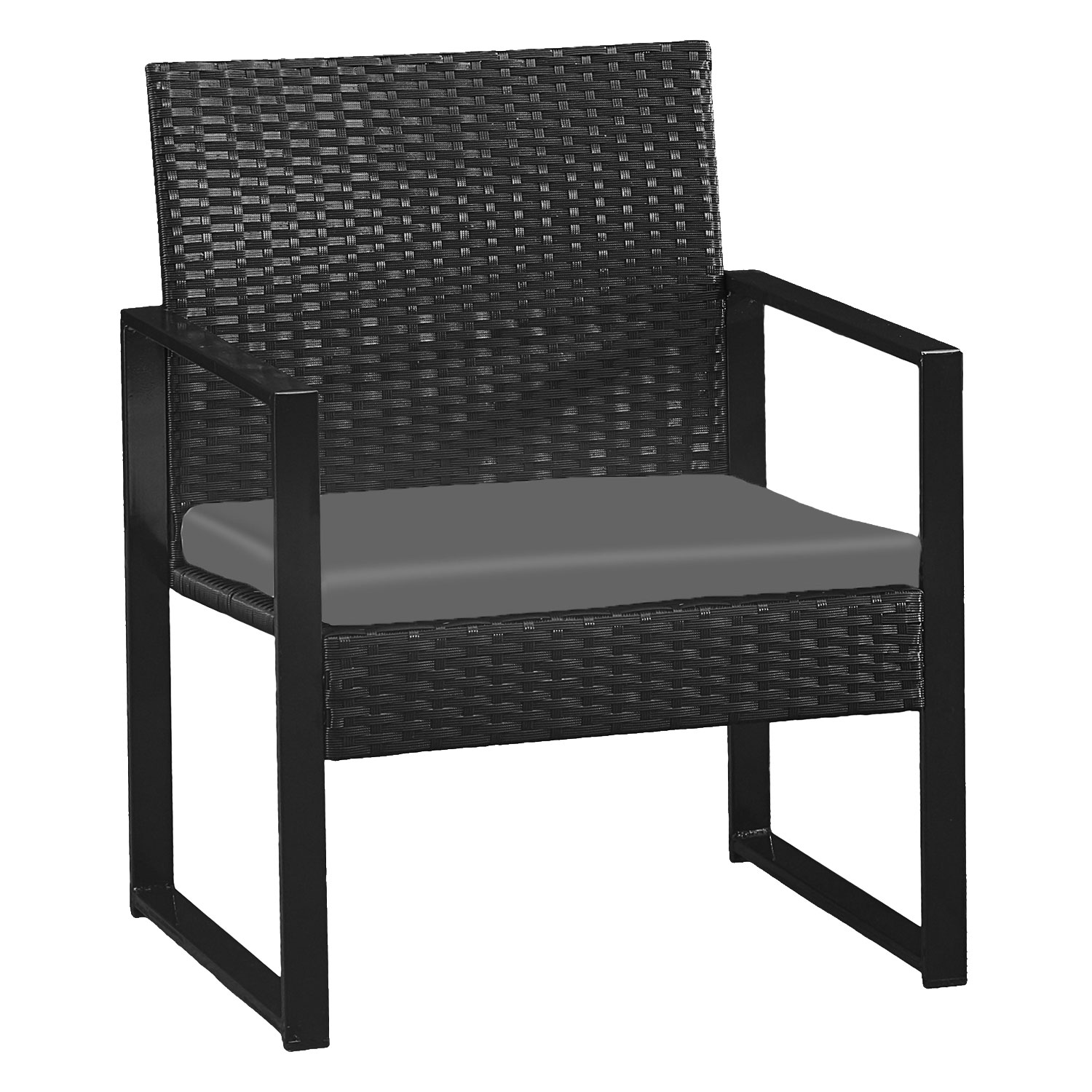 Salon de jardin MAJORQUE en résine tressée noir 4 places - coussins gris
