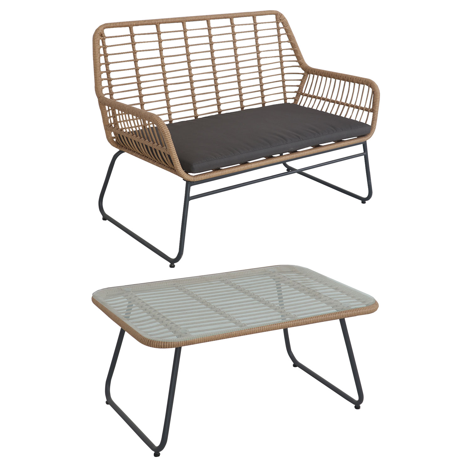 | Libellé | Salon de jardin MARÉ en résine tressée 4 places - coussins gris |