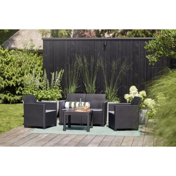 Libellé Salon de jardin marie en résine imitation rotin tressé noir - 4 places - keter