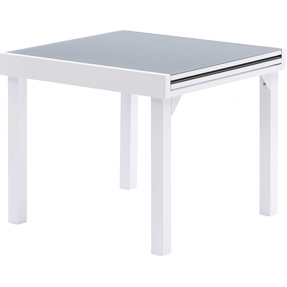 - Structure aluminium blanc et plateau verre trempé