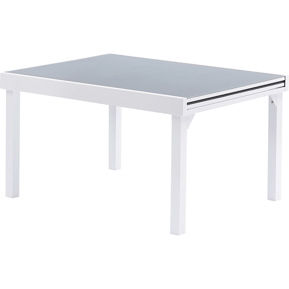 - Structure aluminium blanc et plateau verre trempé