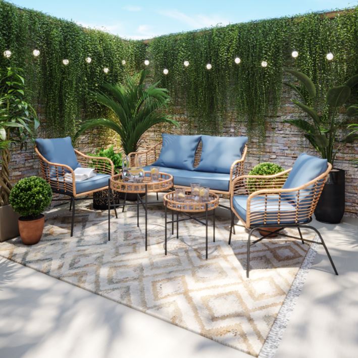 | Libellé | Salon de jardin MOOREA acier et résine tressée 4 places coloris bleu |