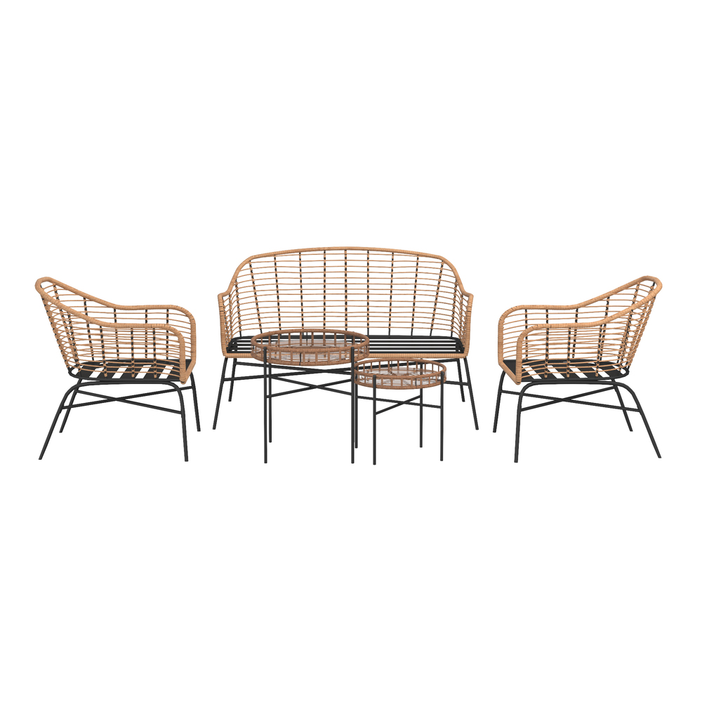 Profitez d?un extérieur cosy et tendance avec notre salon de jardin MOOREA de Beau Rivage. Accueillez jusqu?à 4 convives avec ses deux fauteuils et sa banquette deux places. Idéal pour l?extérieur avec sa structure en acier et son revêtement en rotin naturel. Alors vous l?adoptez ?