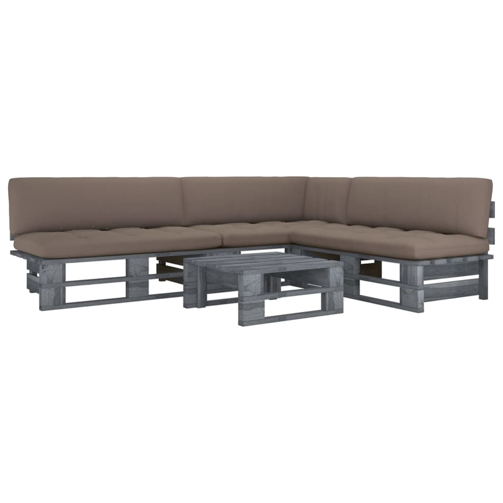 Salon de jardin palette 4pcs avec coussins Pin imprégné de gris