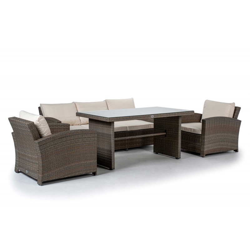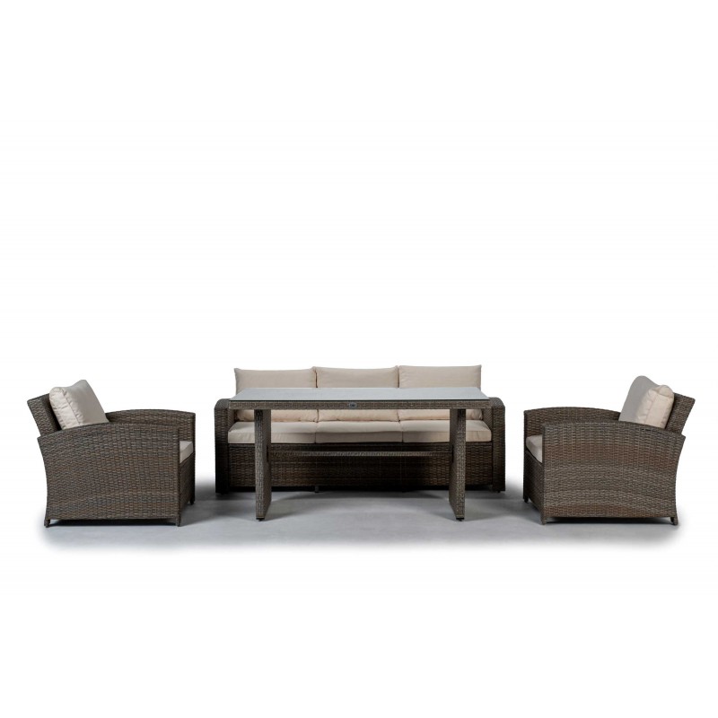Le modèle New York est un magnifique ensemble de meubles d'extérieur, idéal pour profiter du temps à l'extérieur. Il s'agit d'un ensemble de meubles d'extérieur actuels, parfaits pour votre balcon, votre jardin ou votre terrasse, composé d'un canapé triple, de 2 fauteuils simples et d'une table à manger haute, donc conçu pour accueillir jusqu'à 5 personnes.