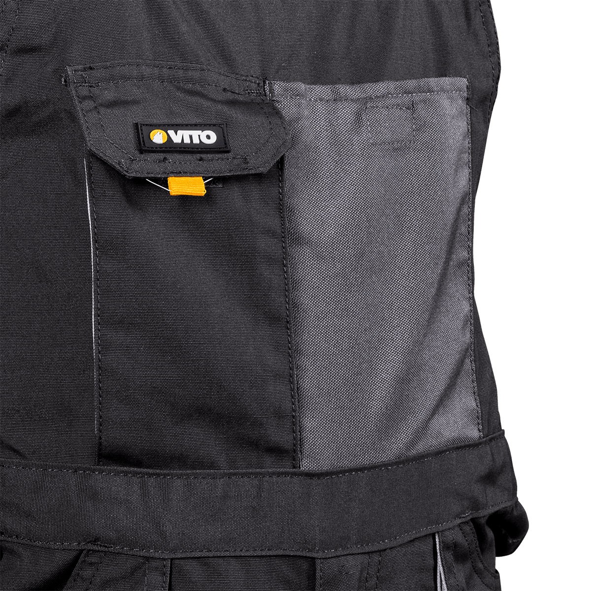 La salopette grise VITO Comfort Plus combine un design moderne avec la protection et la qualité. Elle possède 10 poches multifonctionnelles, des bretelles et une ceinture réglables et dispose même d´une protection renforcée au niveau des genoux.