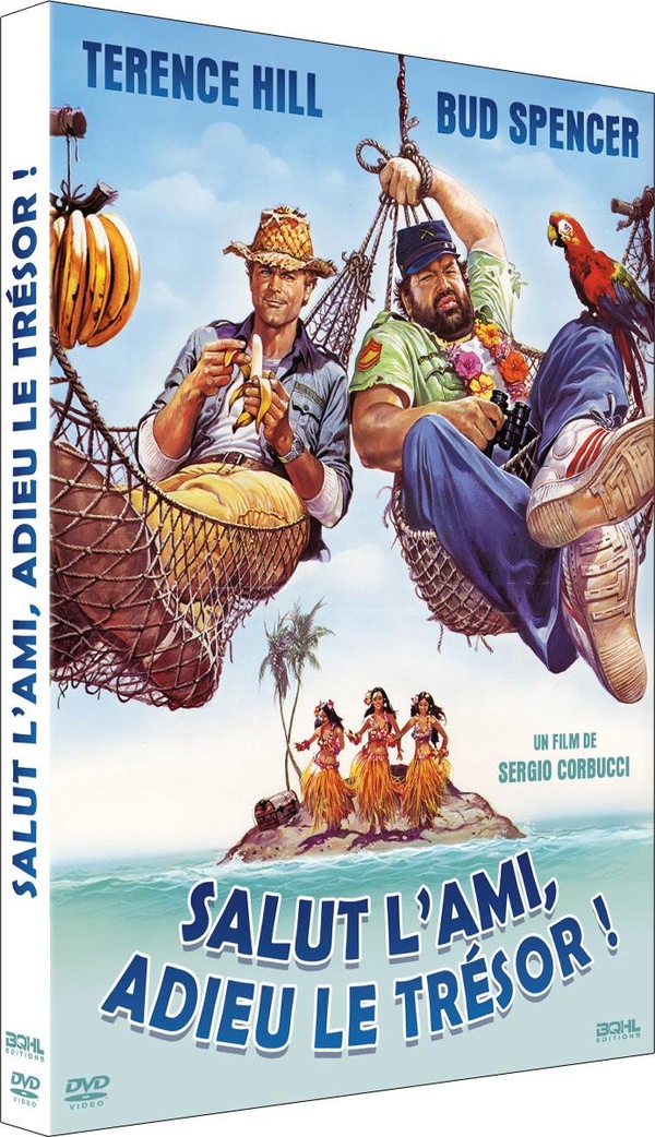 Poursuivie par des gangsters auxquels il doit 15 000 dollars, une petite fripouille du nom d'Alan trouve refuge sur le bateau de Charlie, un marin qui vient de larguer les amarres. Entre le passager clandestin et le capitaine, le torchon brûle si bien que, bientôt, les deux hommes se retrouvent à la mer, aux abords d'une île qu'ils gagnent à la nage. Ce n'est cependant pas un hasard s'ils sont arrivés là, Alan tenant de son oncle une carte indiquant l'emplacement d'un trésor remontant à la fin de la Deuxième Guerre mondiale. Des pirates y ayant aussi débarqué, Alan et Charlie vont devoir défendre leurs millions... LES ROIS DE LA BAGARRE METTENT LES BOUCHÉES DOUBLES En même temps que le premier Indiana Jones, Terence Hill et Bud Spencer se mettent à la page du cinéma d'aventure avec Salut l'ami, adieu le trésor, une comédie d'action orchestrée par Sergio Corbucci, le réalisateur de classiques du western comme Django, Le Grand silence et Le Spécialiste.