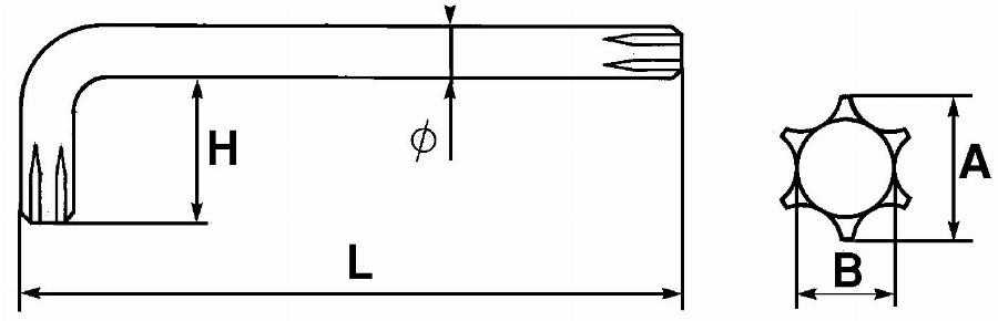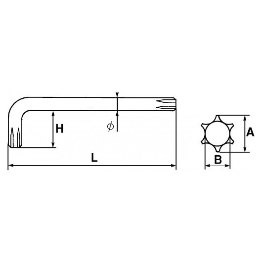 Réf: 66-6 - CLE MALE COUDEE TORX T6