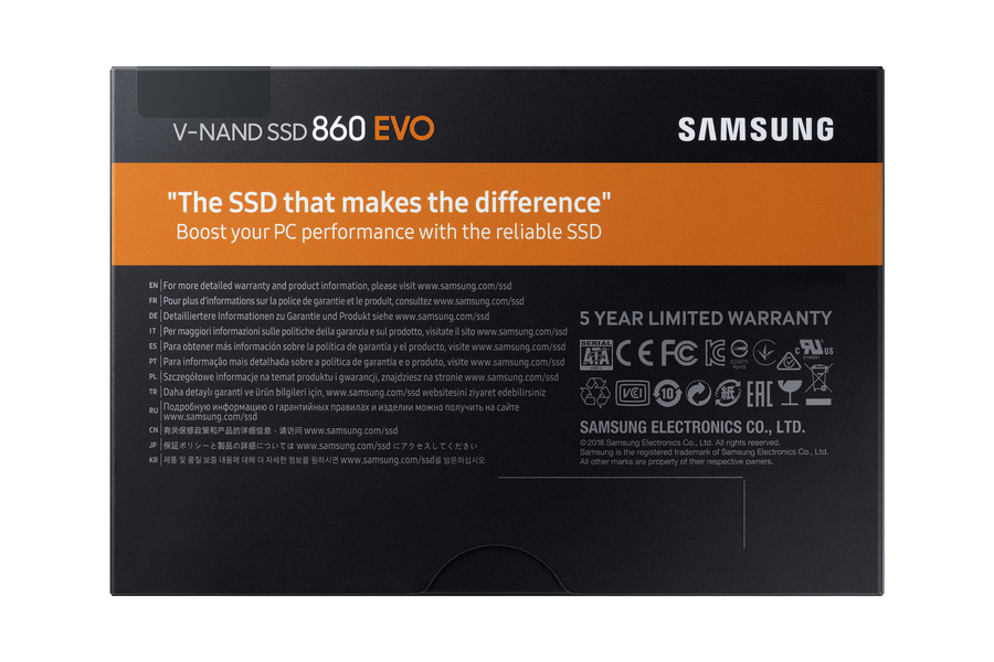 Stockez vos informations en tout sécurité et lisez des vidéos 4k et des données 3D en toute simplicité. Avec jusqu’à 8 fois plus de TBW* que le précédent 850 EVO, le 860 EVO offre une endurance et une fiabilité supérieures renforcées par une garantie de 5 ans. La dernière technologie V-NAND vous offre jusqu'à 2 400 TBW.