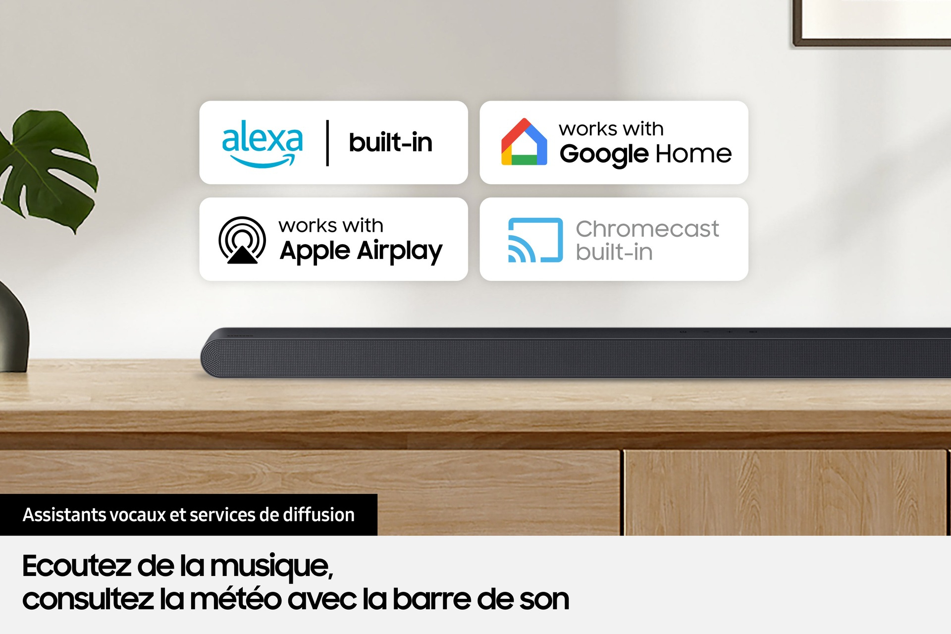 Votre assistant personnel est toujours là pour vous avec la barre de son S810D. Contrôlez votre barre de son à l'aide de votre voix grâce à Alexa intégré ou avec un appareil compatible Google Assistant.