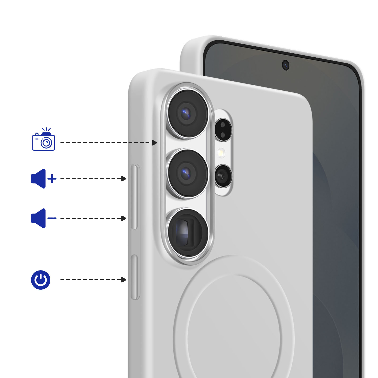 Coque magnétique conçue exclusivement pour Galaxy S26 Ultra. Sa structure hybride associe silicone soft touch semi rigide et renfort interne en polycarbonate pour une protection efficace au quotidien. L anneau aimanté intégré assure la compatibilité avec les chargeurs MagSafe, Qi2 et accessoires magnétiques. Rebord surélevé pour protéger écran et caméra, accès libre au S Pen et ajustement précis des boutons et ports.