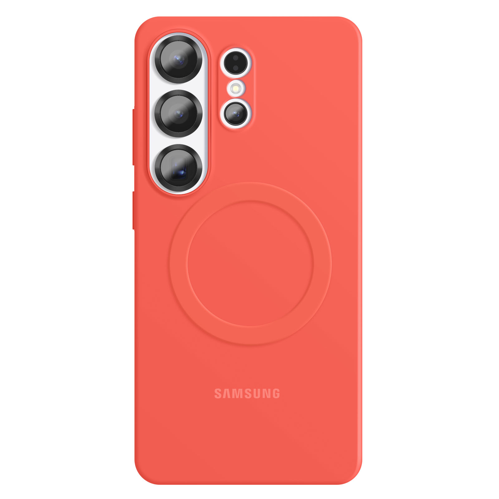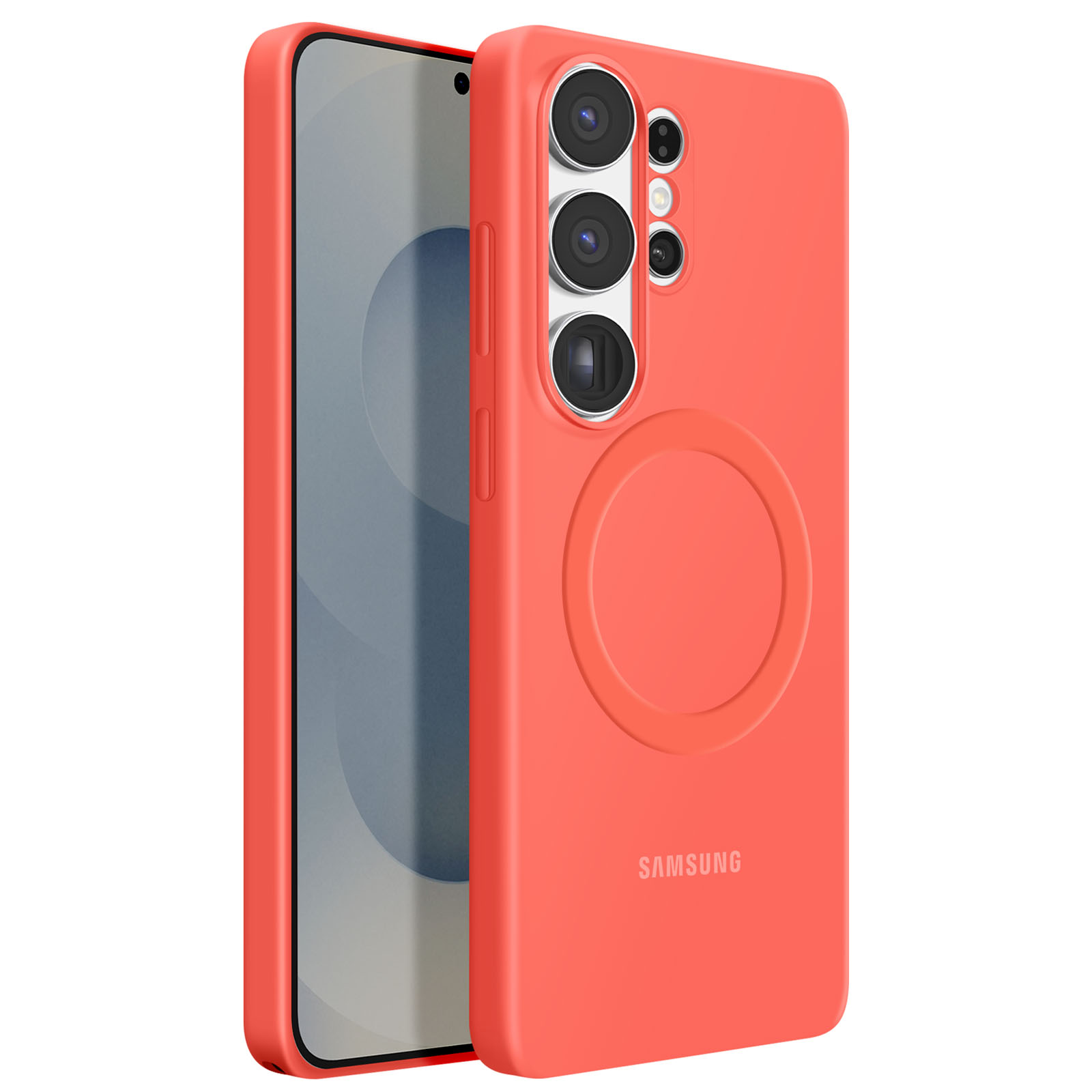 Samsung Coque MagSafe pour Galaxy S26 Ultra Série Silicone Magnet Cover Antichoc Corail