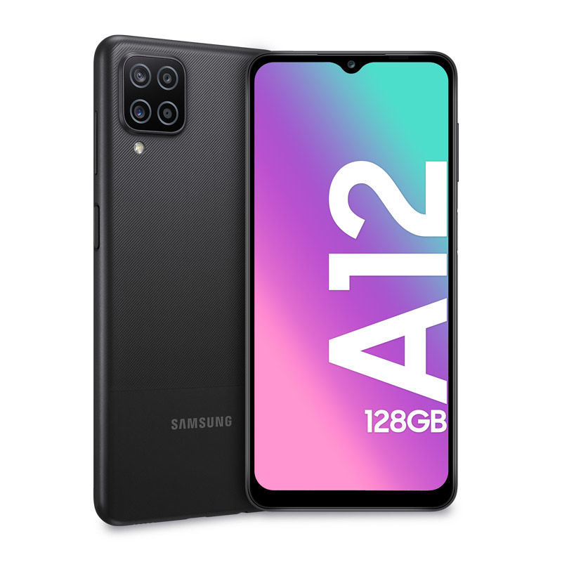 Samsung Galaxy A12 SM-A125FZKKEUE. Taille de l'écran: 16,5 cm (6.5"), Résolution de l'écran: 720 x 1600 pixels, Type d'écran: PLS. Fréquence du processeur: 2,3 GHz, Famille de processeur: MediaTek, Modèle de processeur: MT6765. Capacité de la RAM: 4 Go, Capacité de stockage interne: 128 Go. Résolution de la caméra arrière (numerique): 48 MP, Type de caméra arrière: Quatre caméras. Capacité de la carte SIM: Double SIM. Système d'exploitation installé: Android 10.0. Capacité de la batterie: 5000 mAh. Couleur du produit: Noir. Poids: 205 g