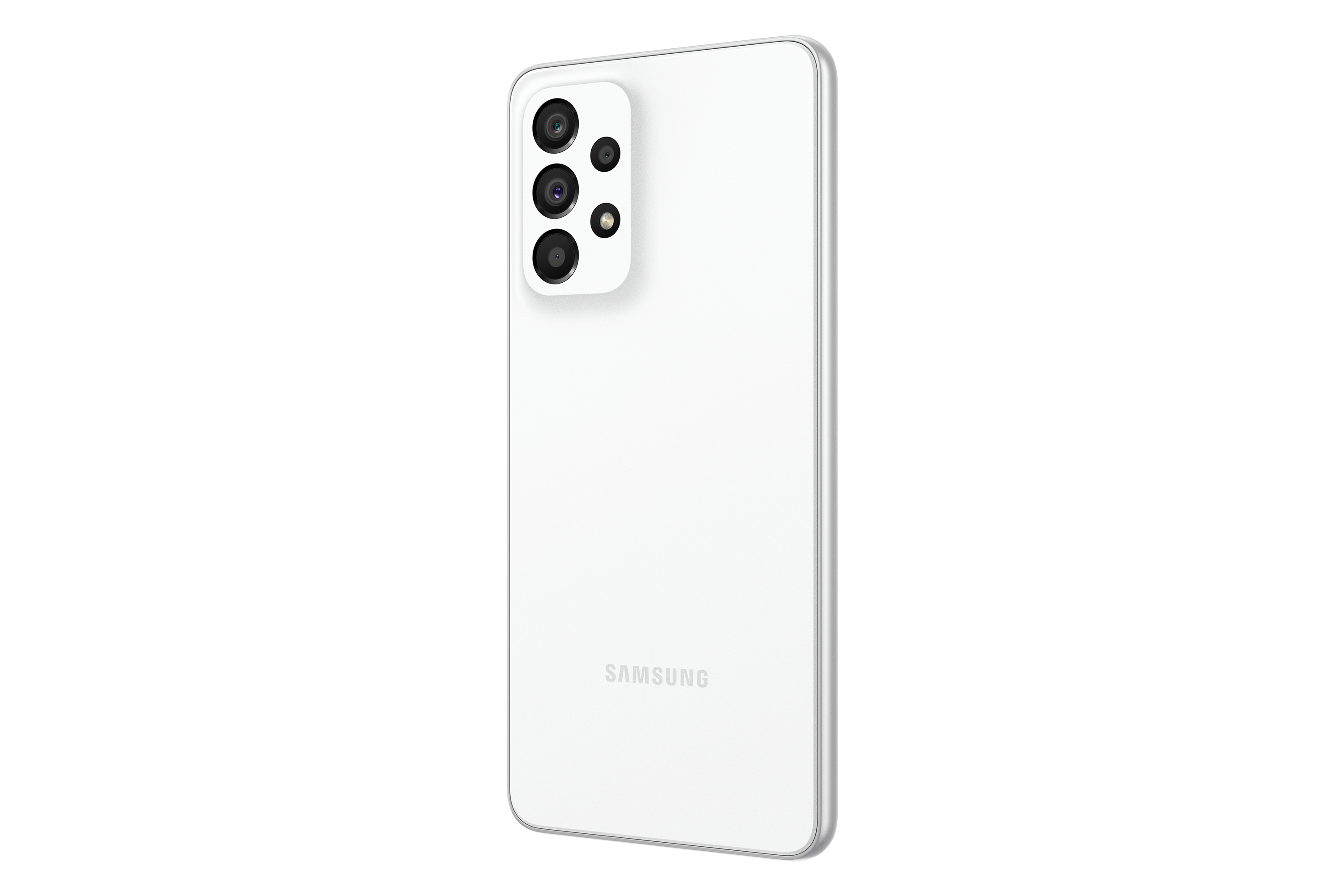 Samsung Galaxy A33 5G SM-A336B. Taille de l'écran: 16,3 cm (6.4"), Résolution de l'écran: 2400 x 1080 pixels, Type d'écran: OLED. Fréquence du processeur: 2,4 GHz, Famille de processeur: Samsung Exynos, Modèle de processeur: 1280. Capacité de la RAM: 6 Go, Capacité de stockage interne: 128 Go. Résolution de la caméra arrière (numerique): 48 MP, Type de caméra arrière: Quatre caméras. Capacité de la carte SIM: Double SIM hybride. Système d'exploitation installé: Android 12. Capacité de la batterie: 5000 mAh. Couleur du produit: Blanc. Poids: 186 g