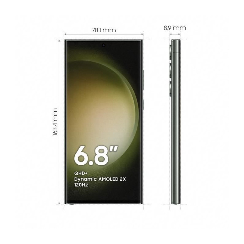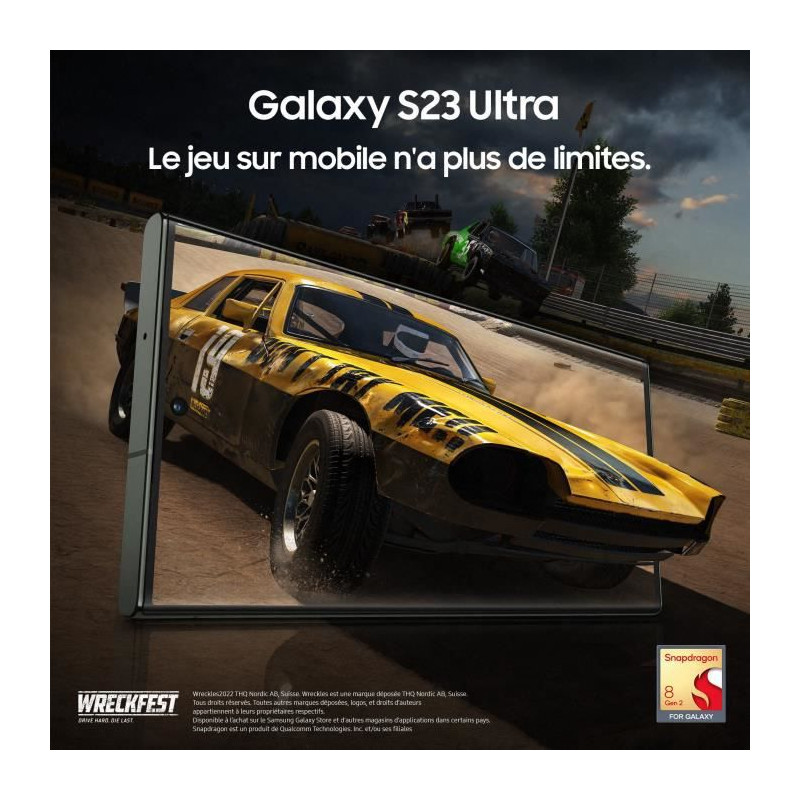 Voici le nouveau Galaxy S23 Ultra. Incarnant un changement majeur pour Samsung, il intègre des composants issus de matériaux recyclés, pour une conception nouvelle plus respectueuse de l’environnement. Incroyablement puissant, il embarque notre processeur le plus rapide à ce jour, le Qualcomm Snapdragon® 8 Gen 2 ; associé à 8Go ou 12Go de RAM. Parfait pour vos sessions de jeu les plus intenses, avec un smartphone qui assure fluidité, hautes performances et autonomie du matin jusqu’au soir. Côté photo, le Galaxy S23 Ultra est incroyable. Avec un système photo à 5 capteurs et capteur principal de 200 Mpx, il est en mesure de révéler la lumière dans la pénombre, shooter en ultra haute définition ou zoomer optiquement en 10x sans perdre en qualité. Pour des photos et vidéos extraordinaires, à tout moment. Son écran de 6,8 pouces, Quad HD+ d’une fluidité adaptative de 120Hz, embarque tout le savoir-faire Samsung. Pour un écran lumineux aux couleurs fidèles, vous plongeant en immersion totale dans vos contenus préférés.