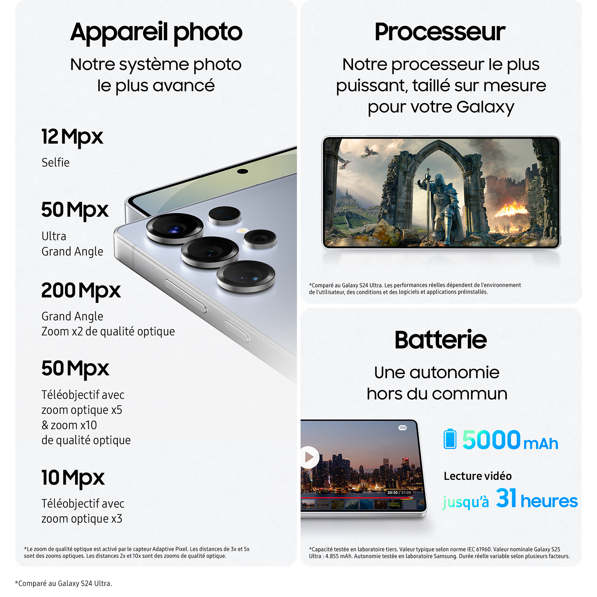 La symbiose idéale entre matériel et logiciel fait du Galaxy S25 Ultra un modèle dendurance. Avec une gestion plus intelligente de la batterie, vous bénéficiez dun smartphone capable de vous suivre partout.