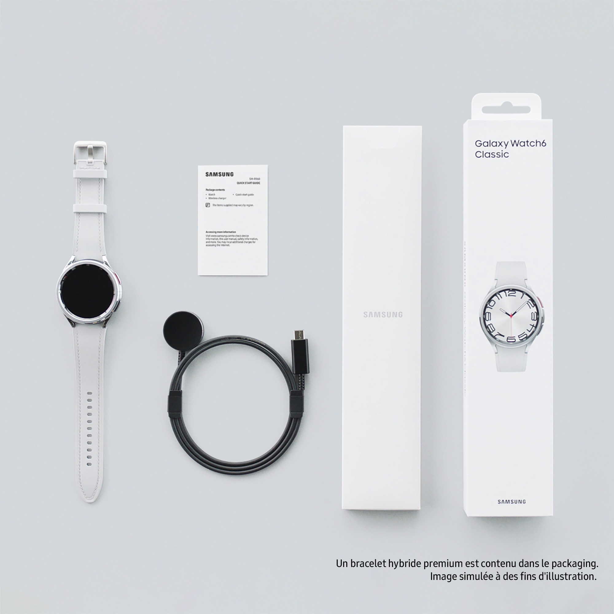 | Libellé | Samsung Galaxy Watch6 Classic 3,81 cm (1.5") OLED 47 mm Numérique 480 x 480 pixels Écran tactile Argent Wifi GPS (satellite) |