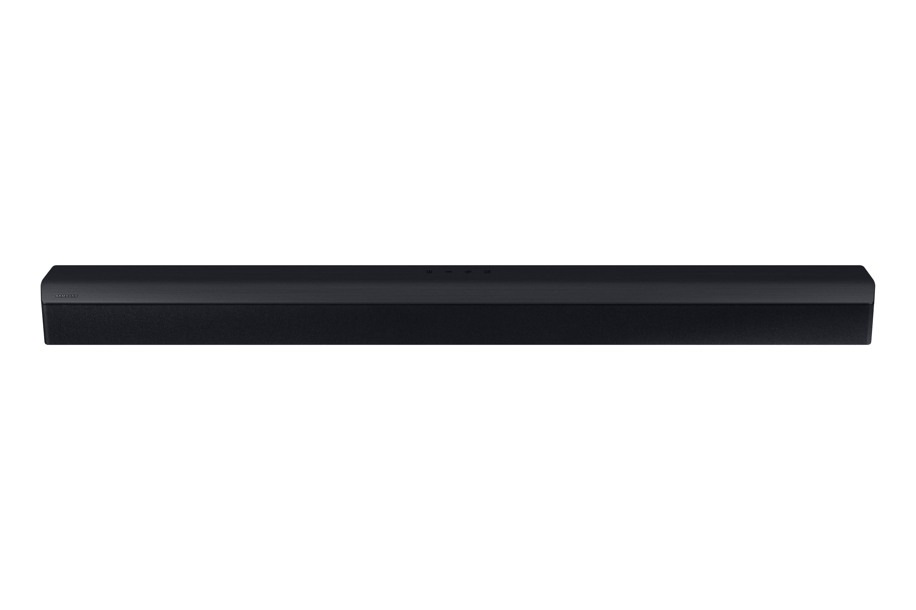 Samsung HW-C450. Canaux de sortie audio: 2.1 canaux, Puissance évaluée de RMS: 300 W, Décodeurs audio intégrés: DTS Virtual:X. Puissance RMS du Subwoofer: 220 W. Couleur du produit: Noir, Formats audio pris en charge: AAC, AIFF, FLAC, MP3, OGG, WAV. Technologie de connectivité: Avec fil. Consommation électrique de la barre de son: 25 W, Consommation d'énergie du subwoofer: 40 W