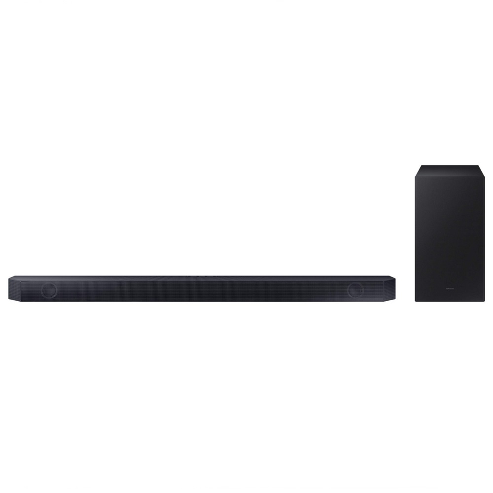 Samsung HW-Q60C. Canaux de sortie audio: 3.1 canaux, Puissance évaluée de RMS: 31 W, Décodeurs audio intégrés: Dolby Atmos, Dolby Digital Plus, Dolby TrueHD. Couleur du produit: Noir, Technologie HDR (plage dynamique élevée): High Dynamic Range 10+ (HDR10 Plus), Formats audio pris en charge: AAC, AIFF, FLAC, LPCM, MP3, OGG, WAV. Technologie de connectivité: Sans fil. Consommation électrique de la barre de son: 31 W, Consommation d'énergie du subwoofer: 28 W. Largeur: 1030 mm, Profondeur: 105 mm, Hauteur: 57 mm