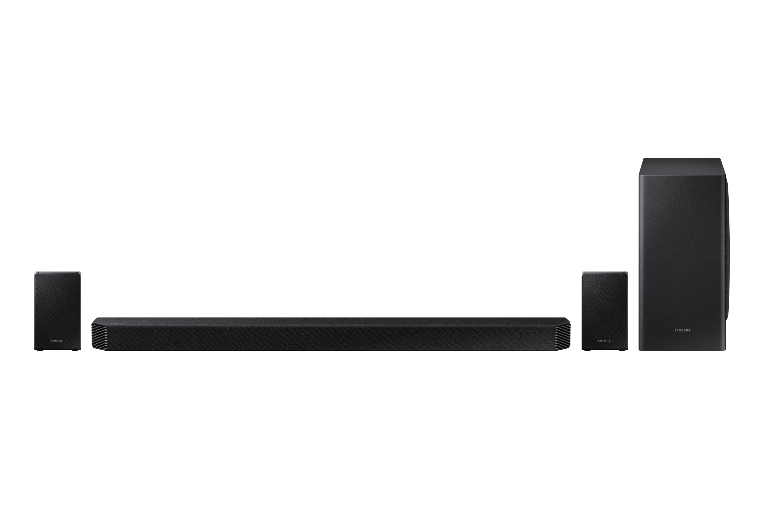 Samsung HW-Q950T. Canaux de sortie audio: 9.1 canaux, Puissance évaluée de RMS: 546 W, Décodeurs audio intégrés: Dolby Atmos, Dolby Digital Plus, Dolby TrueHD. Puissance RMS du haut-parleur Soundbar: 546 W. Type de subwoofer: Caisson de basse actif, Connectivité du subwoofer: Sans fil. Couleur du produit: Noir, Technologie HDR (plage dynamique élevée): High Dynamic Range 10+ (HDR10 Plus), Assistant virtuel: Amazon Alexa. Technologie de connectivité: Avec fil &sans fil