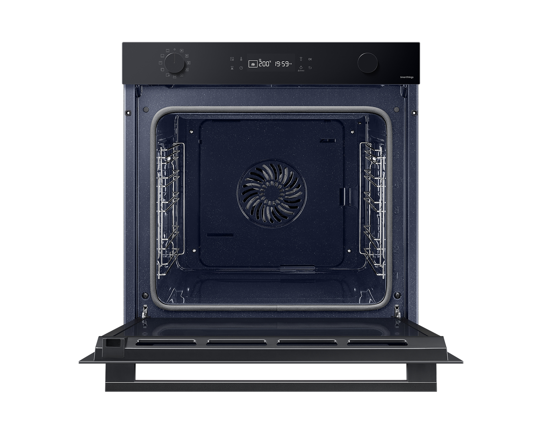 Samsung NV7B41307AK/U1. Taille du four: Grand, Type de four: Four électrique, La capacité totale de l'intérieur du four (s): 76 L. Placement de l'appareil: Intégré, Couleur du produit: Noir, Type de commande: Rotatif, Tactile. Type d'horloge: Électronique, Type de minuterie: Numérique, Modes minuteur: Durée de cuisson, Fin de la durée de cuisson. Consommation d'énergie (conventionnelle): 1,05 kWh, Consommation d'énergie (convection forcée): 0,71 kWh, Plage d’efficacité énergétique: A+++ à D. Quantité de lampes: 1 lampe(s), Type de lampe: Halogène, Emplacement d'éclairage: Haut