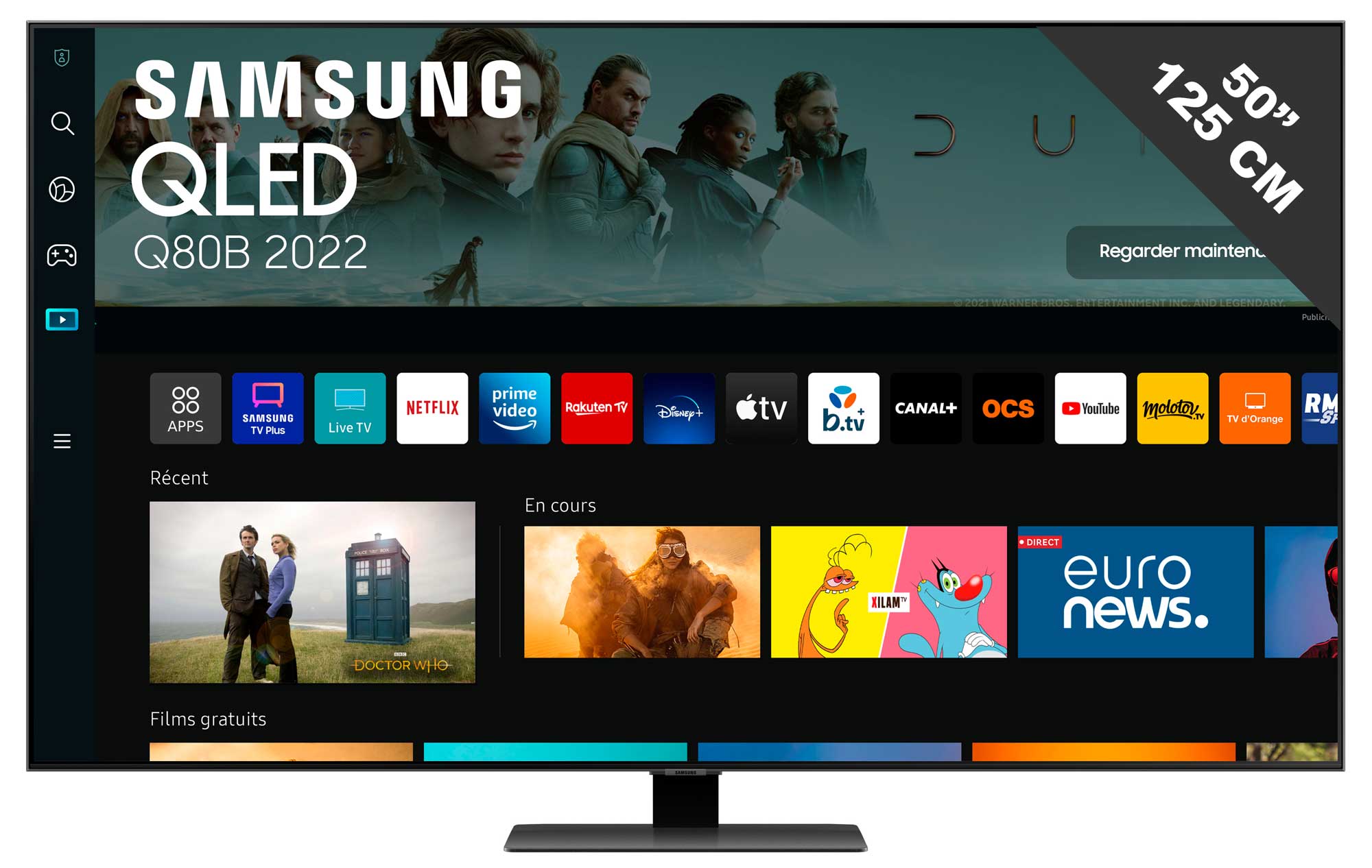 | Libellé | Samsung Series 8 QE50Q80BAT 127 cm (50") 4K Ultra HD Smart TV Wifi Noir, Argent |