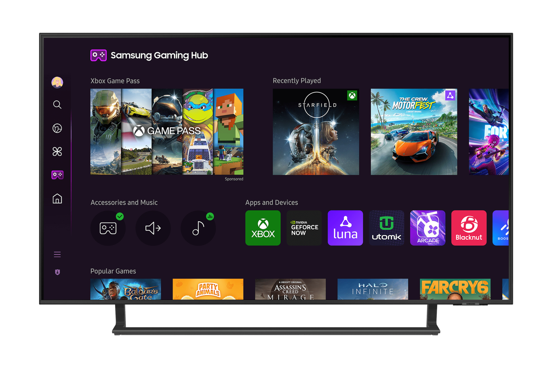 Le Gaming Hub est la nouvelle plateforme de découverte de jeux en streaming, qui allie le meilleur des caractéristiques techniques du téléviseur et de ses fonctionnalités Smart afin de proposer aux gamers une expérience optimale.