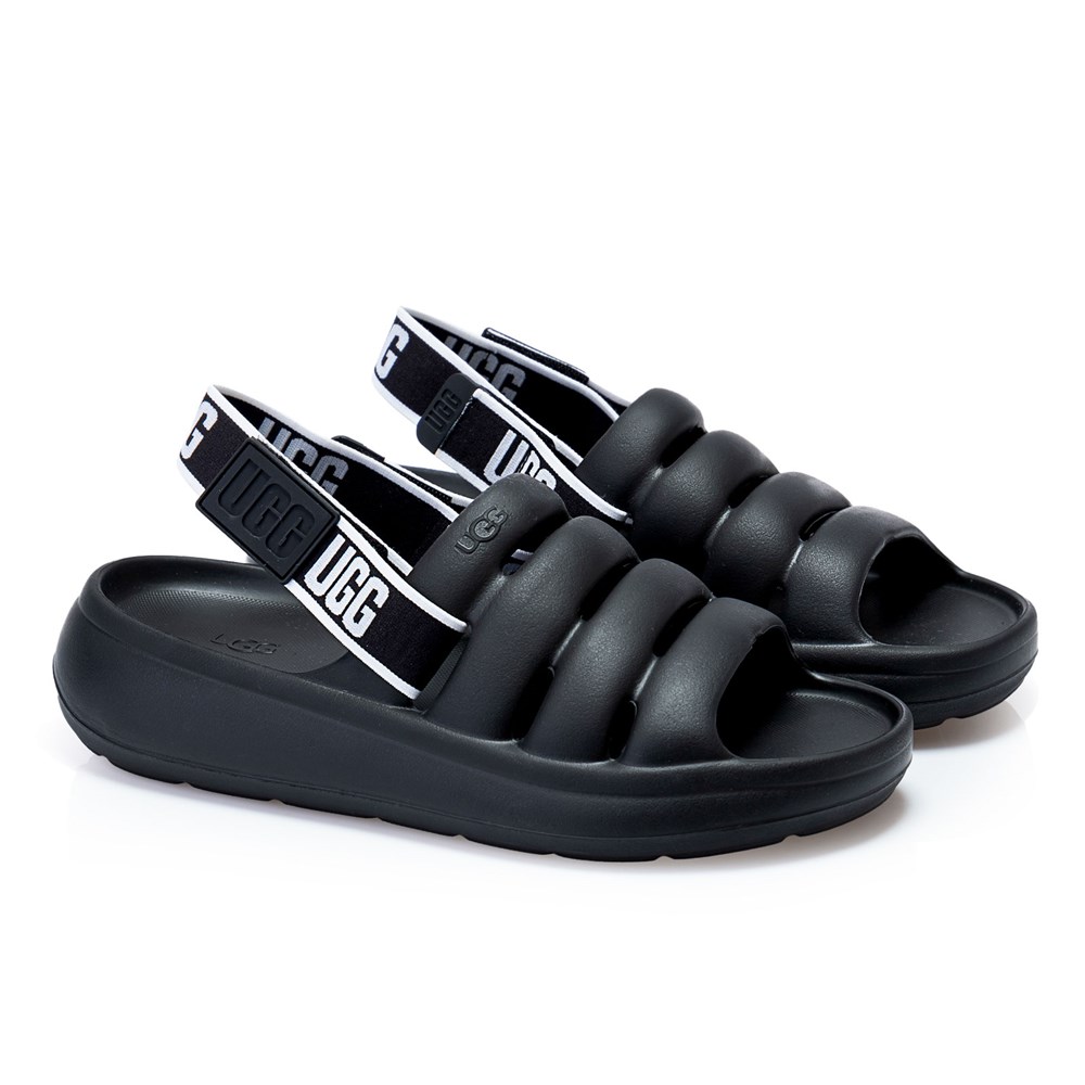 Originales et de style, les sandales universelles pour femmes. Elles ont été conçues pour été et, comme telles elles sont toujours appréciées par les utilisateurs. La construction ferme et les éléments techniques très innovatrices y exercent influence. De la combinaison de ces traits dans les chaussures UGG Sport Yeah Slides 1126811BLK résulte une maintenance accomplie du pied au cours de mouvement furtifs, ce qui signifie que la sécurité de vos pieds augmente. Dans ces chaussures UGG on a pris soin de fonctionnalité de la tige – elle assure la respirabilité maximale – et, par-là, elle améliore le confort de vos pieds. En même temps elle vous protège au maximum contre les conditions climatiques. Tous ces buts ont été réalisé grâce à l’utilisation des composants bien sélectionnés (synthétique).