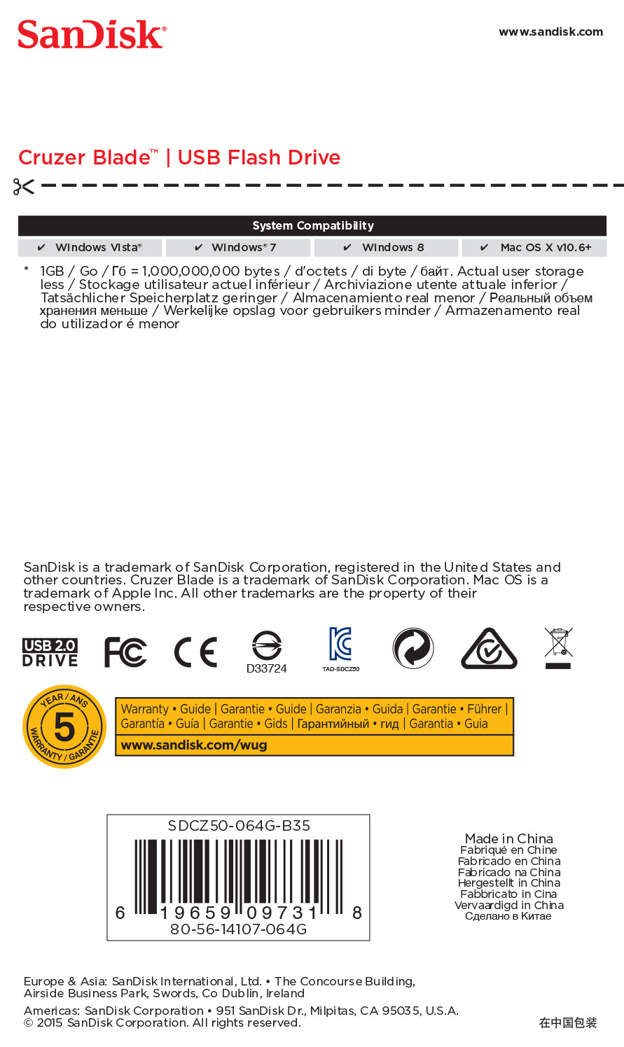 | Libellé | SanDisk Cruzer Blade lecteur USB flash 64 Go USB Type-A 2.0 Noir, Rouge |