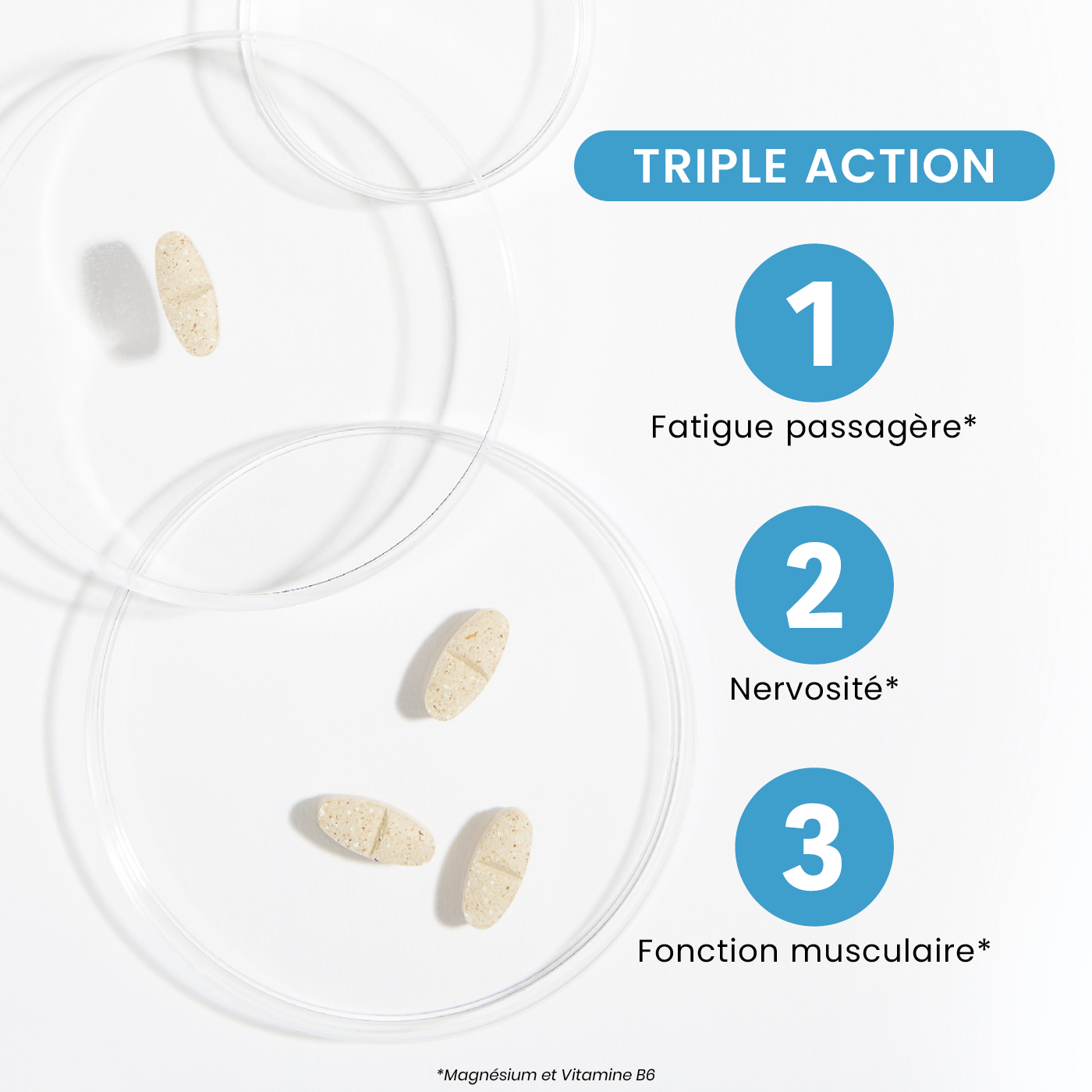 Fatigue passagère ? Nervosité ? Découvrez Magné Marin Extra Fort, notre complément alimentaire qui aide à réduire la fatigue et au fonctionnement normal du système nerveux. Notre formule est fortement dosée en Magnésium Marin (360 mg), qui participe à une bonne fonction musculaire et contribue à diminuer la fatigue et la nervosité. En complément, notre formule est enrichie en Vitamine B6, qui apporte énergie et contribue au métabolisme normal des protéines et du glycogène. Notre produit est fabriqué en France !