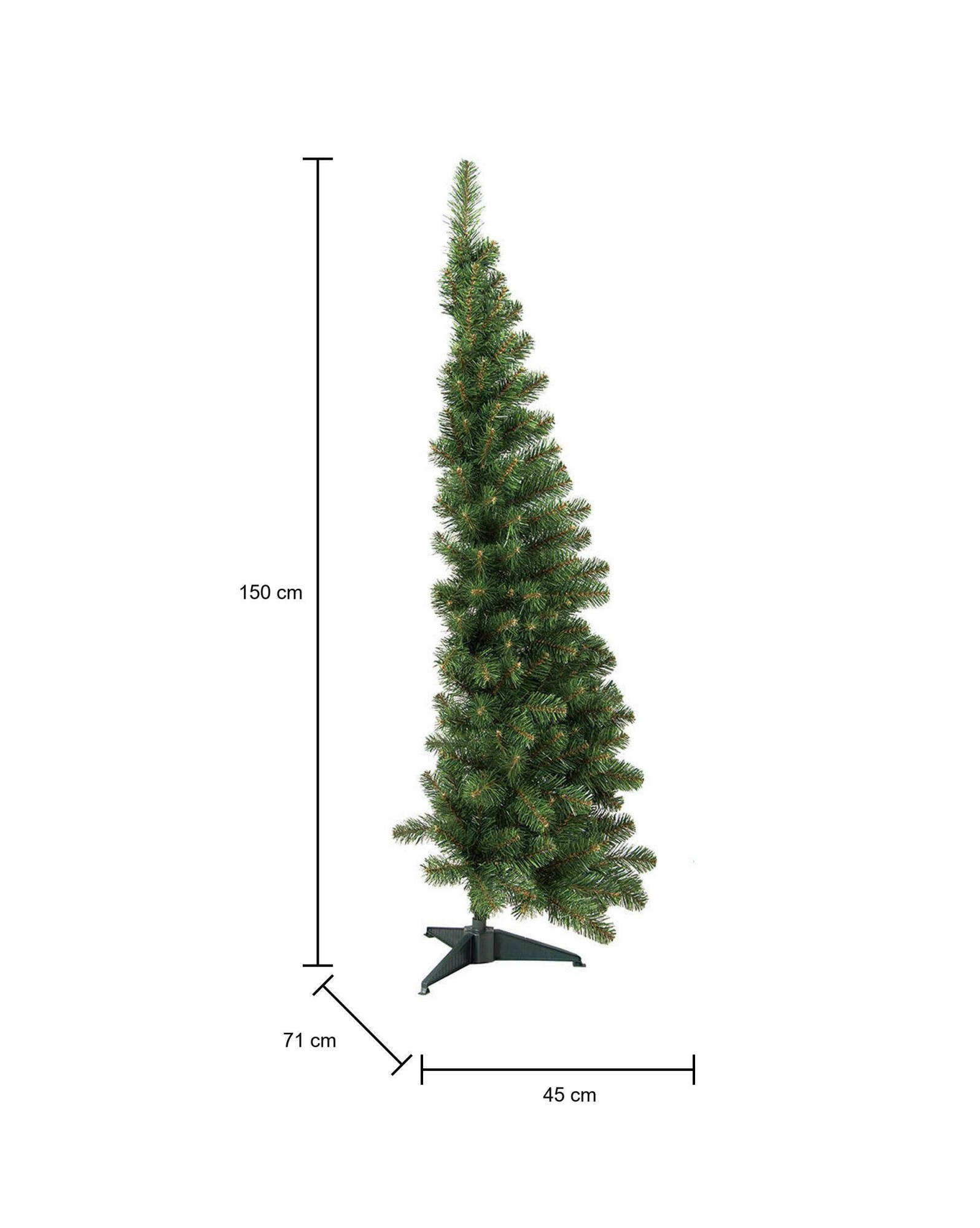 SAPIN DE NOËL 150 CM - Pin artificiel, Arbre à effet réel, Sapin de Noël, 45x71 h150 cm, Vert. STRUCTURE ET UTILISATION - Arbre synthétique composé de branches robustes et épaisses qui rendent ce produit très réaliste et résistant - Les branches sont constituées d'aiguilles très épaisses, idéales pour assurer une magnifique décoration - Les aiguilles sont conçues pour ne pas tomber et ne pas se salir. QUALITÉ ET DESIGN - Meuble au design moderne et élégant, parfait pour meubler un environnement contemporain et lumineux - Idéal pour ceux qui recherchent des solutions fonctionnelles et peu encombrantes, ce produit est parfait pour les maisons et les appartements de toutes tailles - Garantie de deux ans à compter de la date d'achat. CARACTÉRISTIQUES TECHNIQUES - Accessoire d'ameublement polyvalent, conçu pour une intégration facile avec d'autres meubles - Emballage résistant, conçu pour le commerce électronique - Matériau: PVC - Informations supplémentaires: Nombre de branches: 237 - Les branches sont fixées au tronc à l'aide d'un bandage PVC avec ouverture parapluie - Socle en plastique - Ces produits respectent l'environnement et sont tous traités avec des teintures réglementaires, pour éviter les risques d'incendies dus à des dysfonctionnements électriques - Précisément le matériau dont ils sont faits et le traitement réfléchi qu'ils reçoivent permettent à l'arbre d'être ignifuge. DIMENSIONS EN CM - Sapin de Noël 150 cm: Longueur: 45 Largeur: 71 Hauteur: 150 - Dimensions supplémentaires: Diamètre: 71 cm